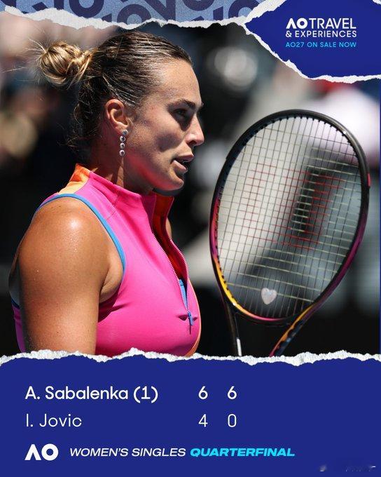 萨巴伦卡6-3 6-0 约维奇萨巴的发挥无可挑剔,连续第四次打入澳网半决赛,连续第六次大满贯半决赛。在最重要的赛事中,这种稳定性简直令人难以置信。✅第14个大满贯半决赛✅ 2026年10胜0负✅在澳网最近26场比赛中赢了25场萨巴伦卡连续四年澳网进四强澳网2026这很澳网wta