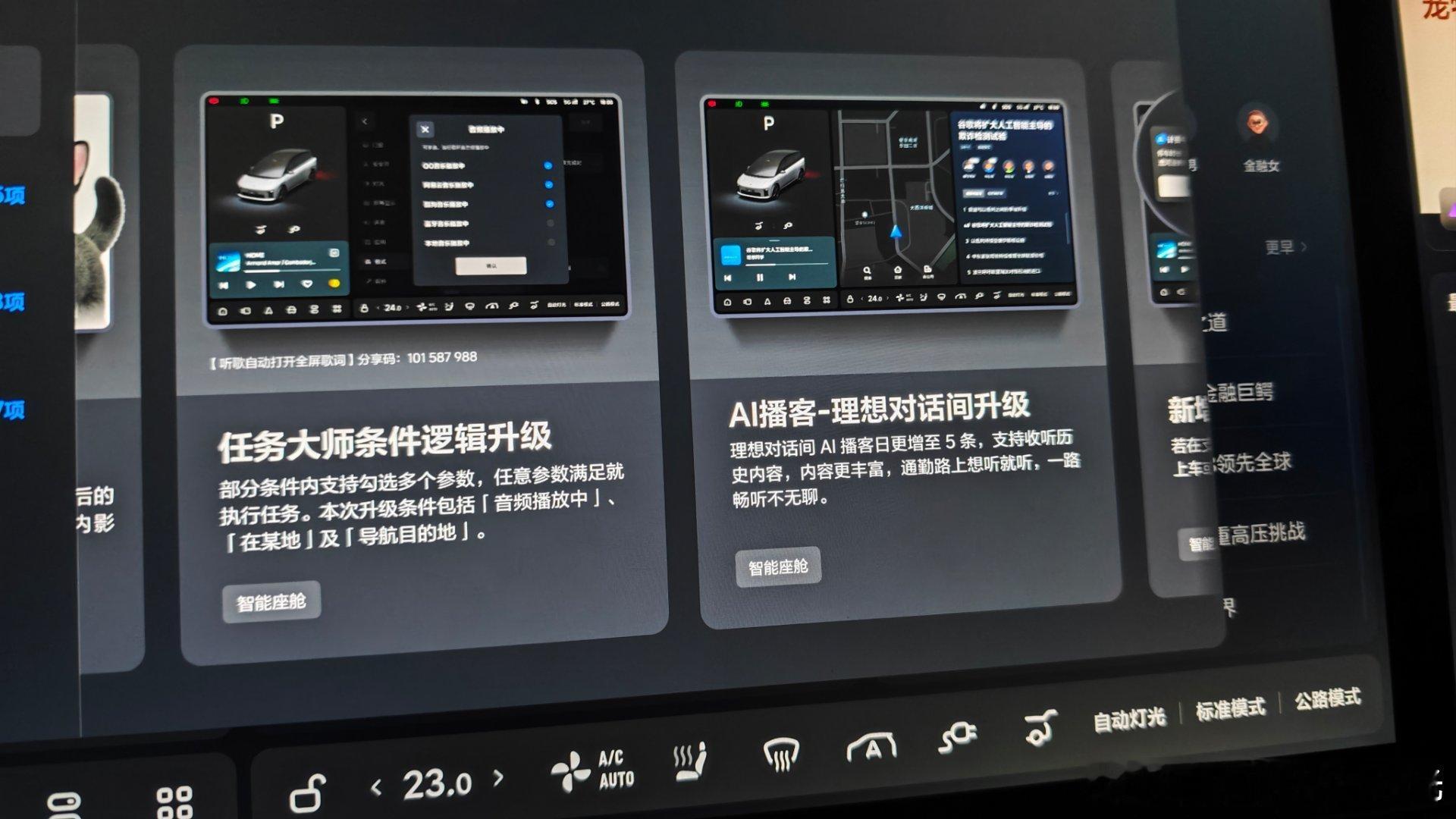 白宁的理想i8 升级8.2了,窄路HUD影像太实用了,人脸识别记忆座位也是之前我一直想要的。还有一大堆功能,图里都有,理想真是我买过的升级最快,升级幅度最大的车。