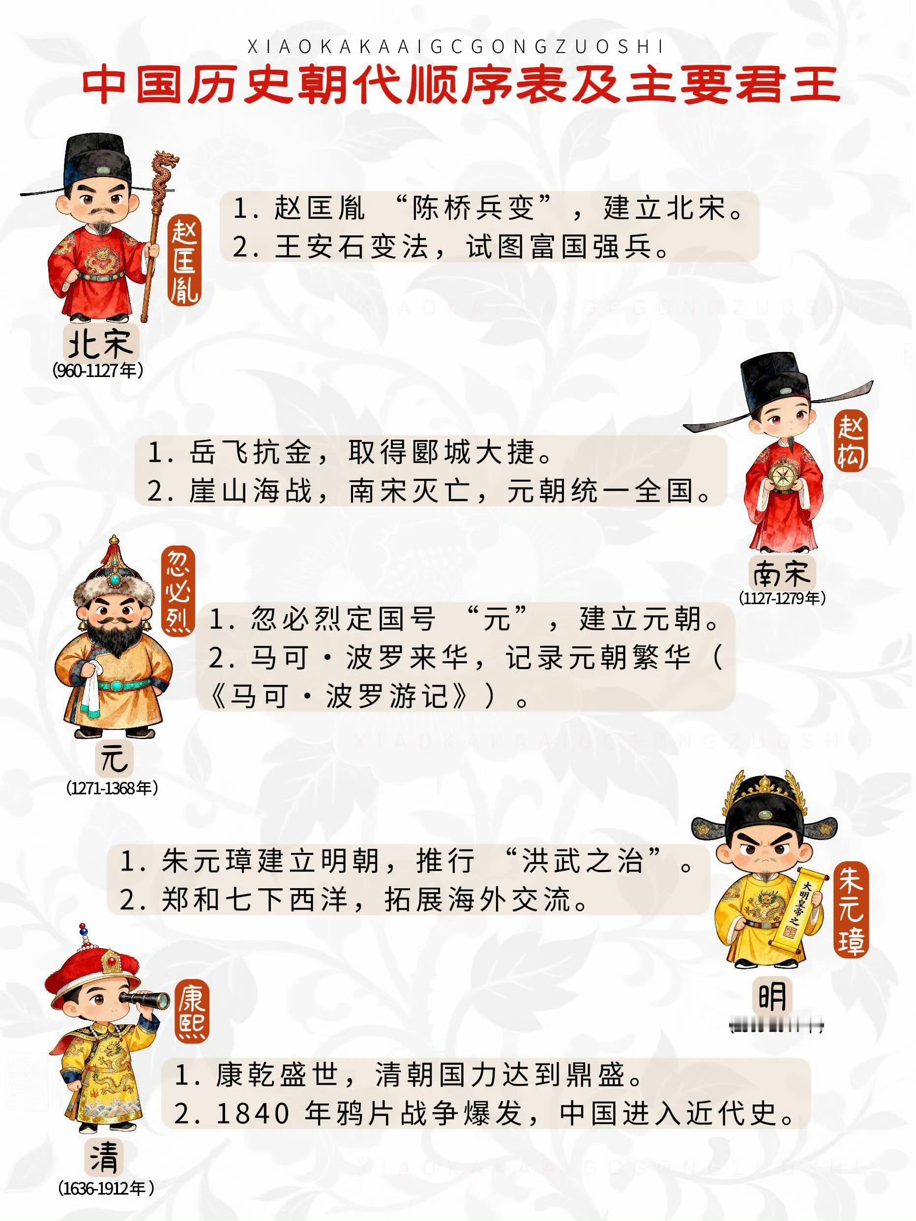 一张图弄懂,中国朝代更替顺序和开国君主。