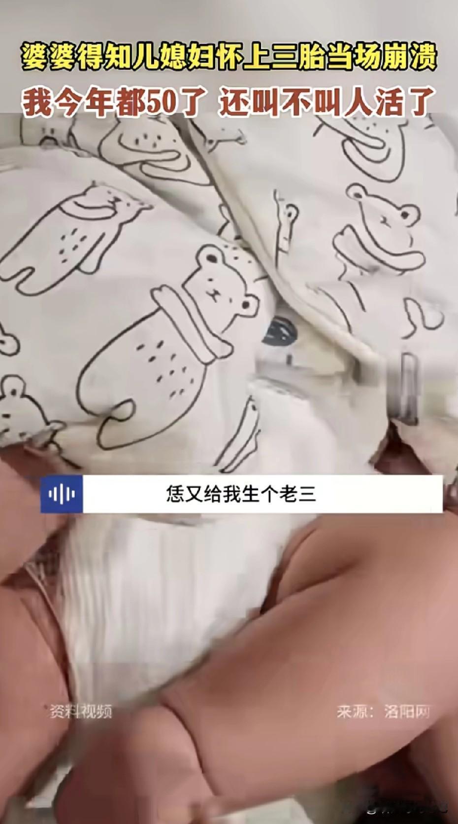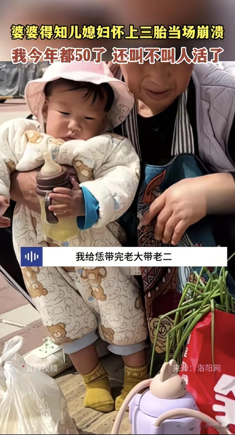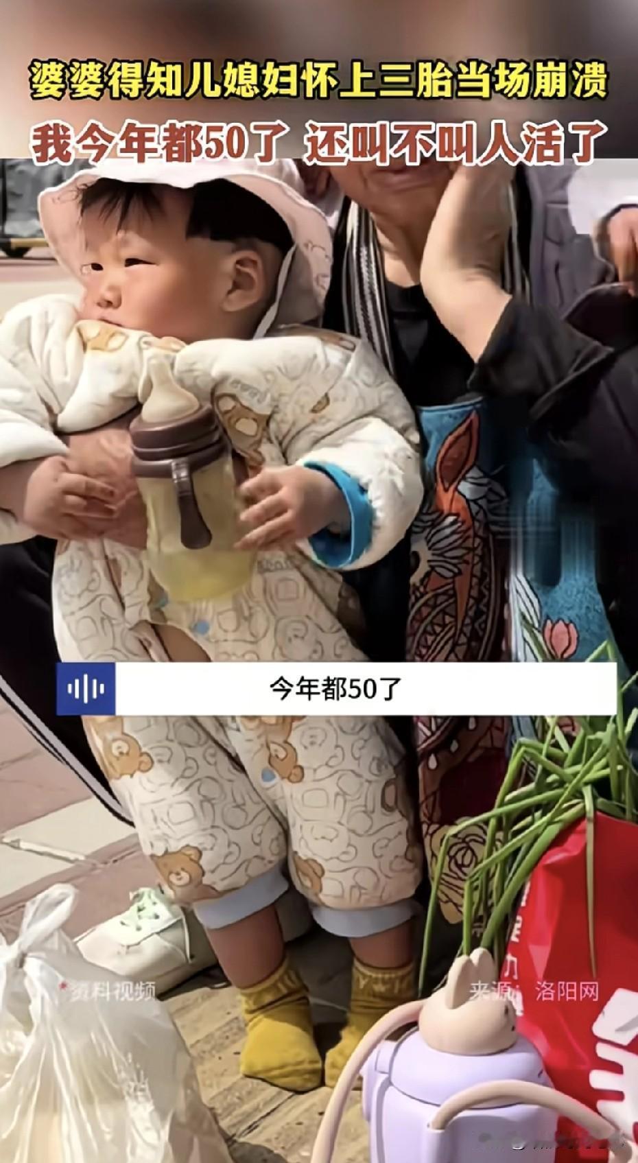 河南一位媳妇刚说完“妈,我怀了三胎”。 婆婆一屁股坐地上,边哭边捶地板:“我从16岁带娃带到50,刚想跳广场舞,你们又给我整老三?!我今年都50了,还叫人活不活?” 转头揪她拽着儿子衣领吼“笑啥笑,你倒是生啊,你带啊!” 弹幕齐刷:全网最惨婆婆,没有之一。 现实里,多少老人活成了“免费保姆”: 儿子一句“妈你闲着也是闲着”,就把娃直接塞过去; 媳妇一句“别人婆婆都带仨”,就把夜班接力棒递出去。 带完老大带老二,现在老三来了,退休金全变成尿不湿,腰椎间盘成了家庭牺牲品。 年轻人说“生得起”,其实潜台词是“有人替我养”。 老人说“我乐意”,背后全是“不乐意也没办法”。 所以,别光催“多子多福”,孩子不是吹口气就能长大,是靠一宿一宿的抱睡、一口一口的辅食堆出来的。 三胎放开的底色应该是“可生、能养、有人带”。如果社会配套不跟进,最后就是把“人口红利”硬生生压成“婆婆血泪”。 (图源:网络)