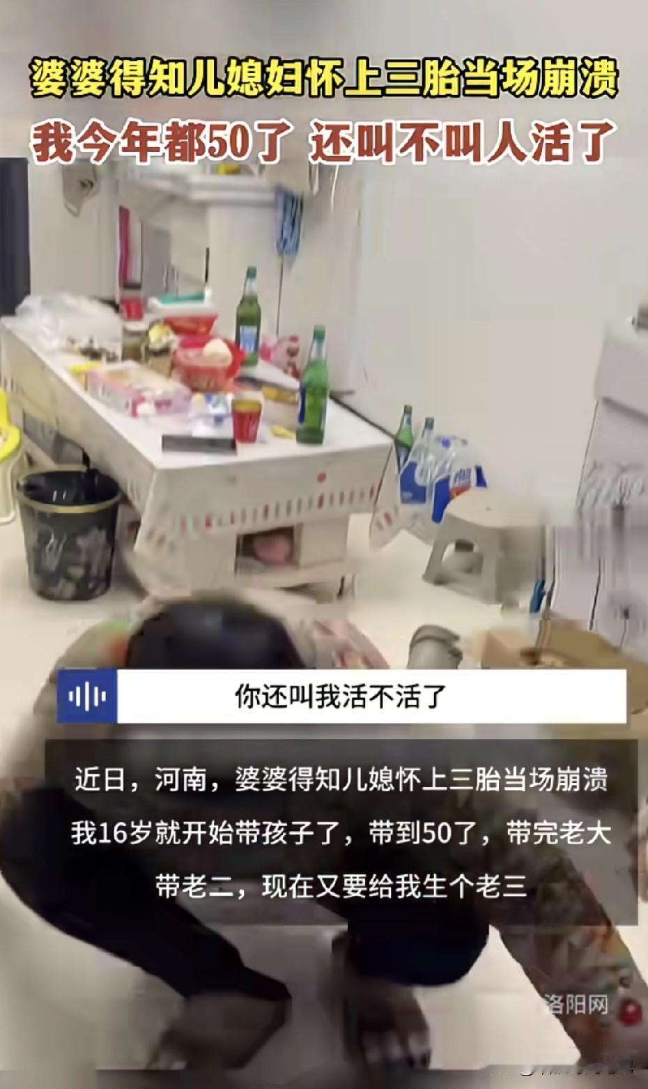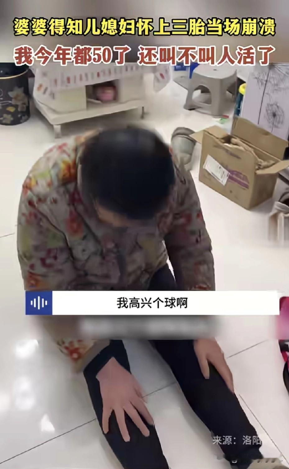 河南一位媳妇刚说完“妈,我怀了三胎”。 婆婆一屁股坐地上,边哭边捶地板:“我从1