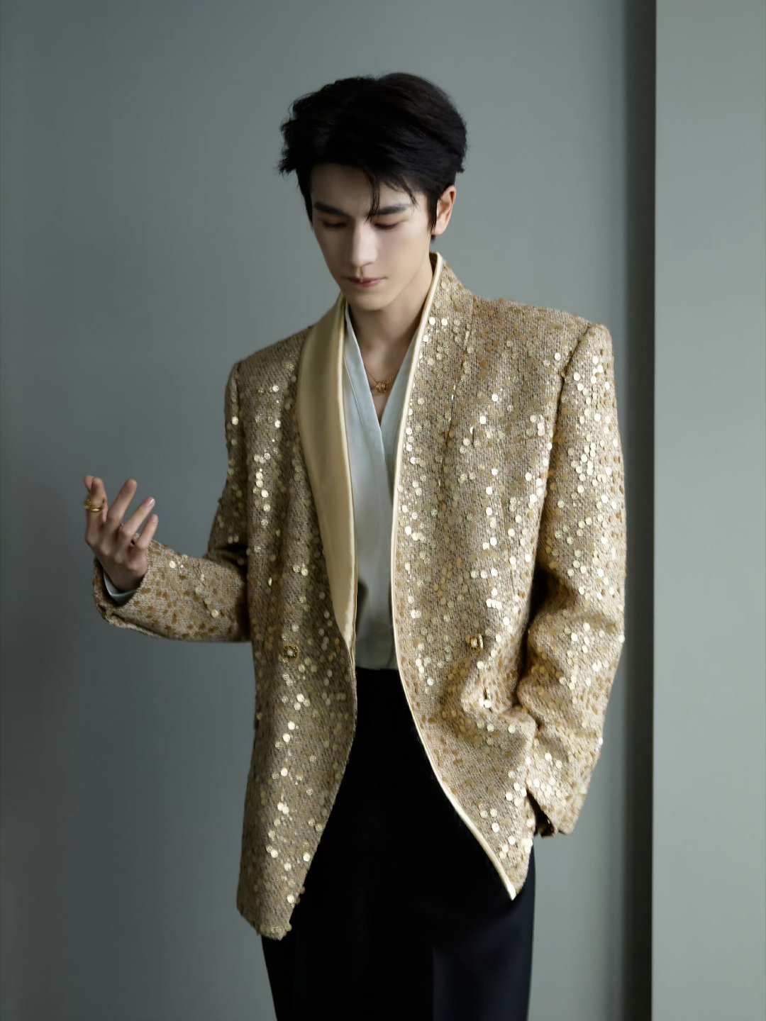 张凌赫 ✖️ 追觅苏州线下活动聚焦张凌赫的活动造型大片。一袭金色亮片西服套装出镜,将迷人闪耀的贵公子气质演绎得淋漓尽致。在珠宝的映衬下,整个人散发着奢华而优雅的格调,帅得很权威。张凌赫苏州线下活动
