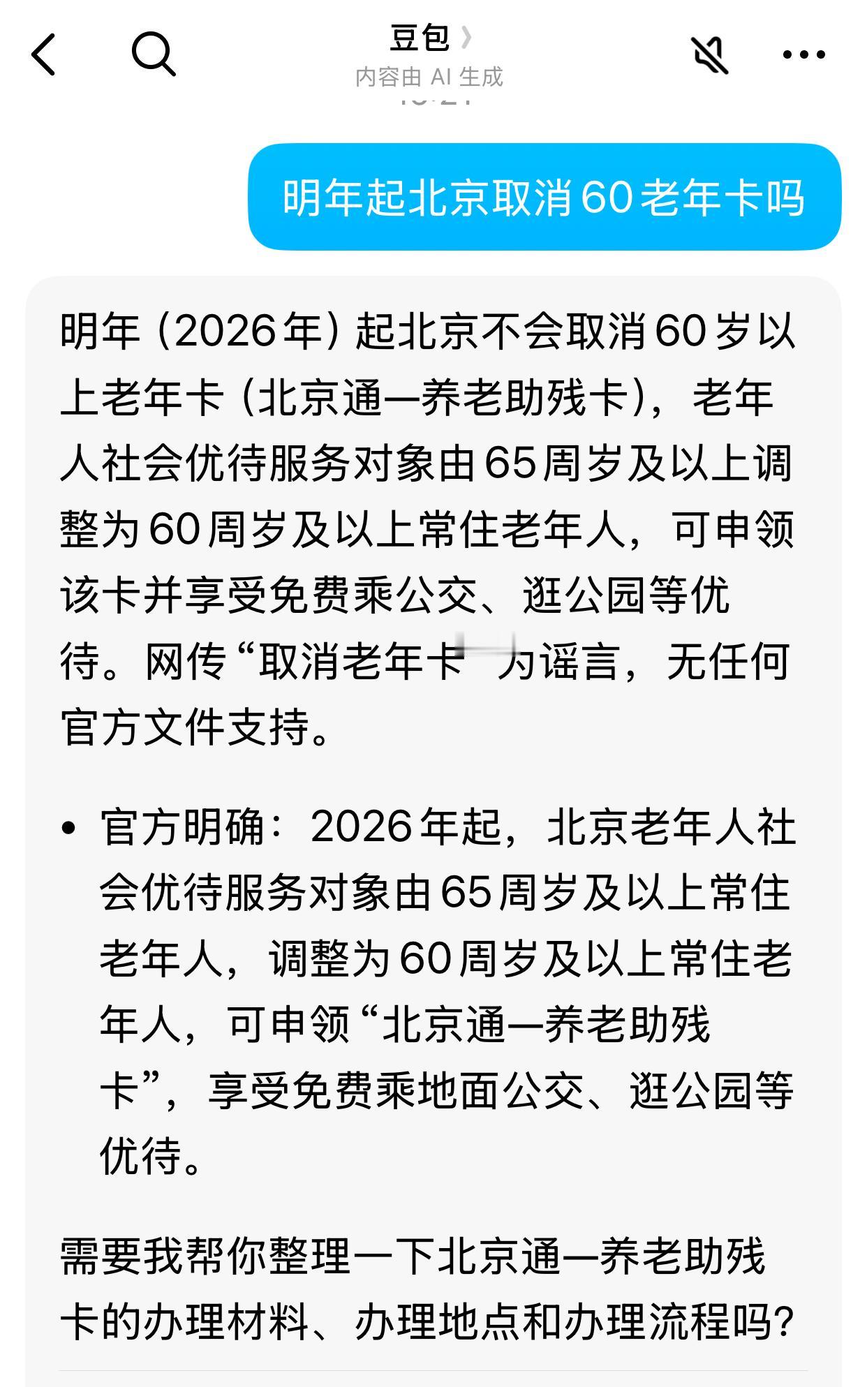 @豆包 你是不是也有犯错的时候?北京明明早就是60岁享受老年卡,你为什么说是2026年开始,领取老年卡的人,从65岁改成60岁?老年乘车卡 老人卡年审 老年消费卡 地铁老年卡 老年优惠卡 西安老年卡 北京退卡