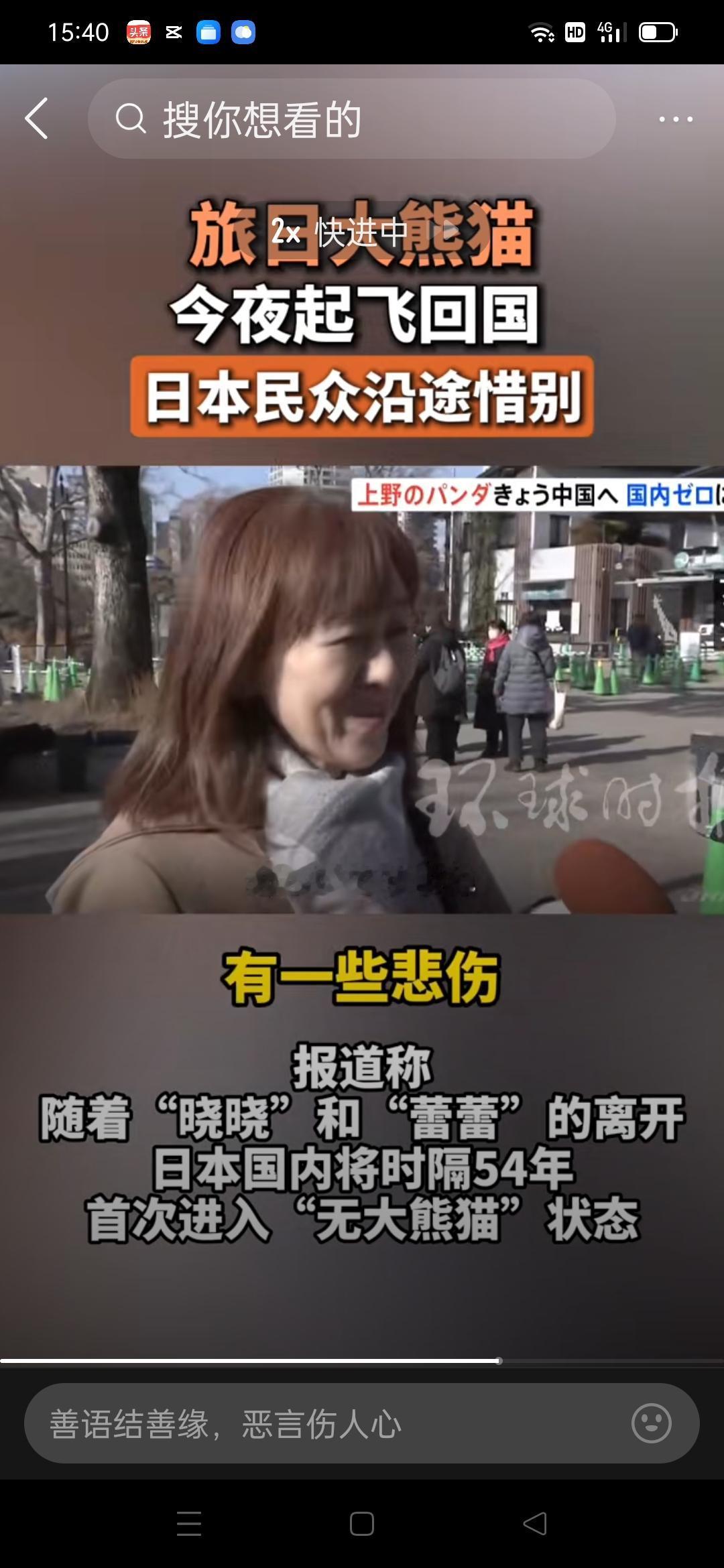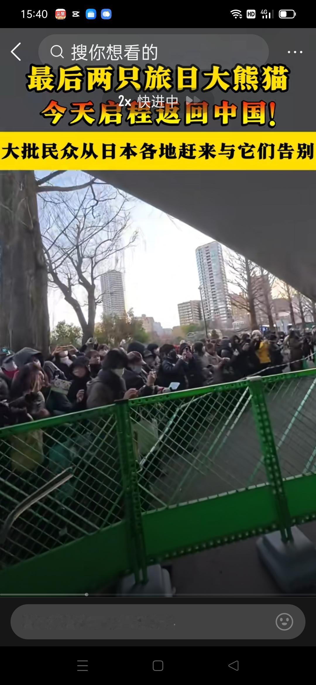 大熊猫“晓晓”“蕾蕾”归国,日本民众依依不舍,日本政客还要触碰涉台红线吗? 大熊猫回国,看清了两个事实: 一面是民间的温情:半个世纪熊猫情缘,早已刻进几代日本人的记忆,送别现场的长队与祝福,是最纯粹的跨国喜爱; 一面是官方的猖狂:高市“台湾有事就是日本有事”,触碰涉台红线,破坏了熊猫合作的政治基础。“无熊猫时代”的到来,恰恰印证了国家核心利益是国际合作的前提。 科学繁育需要它们归国,而合作重启,更需日方拿出诚意。 大熊猫回国 中日关系观察 旅外归国大熊猫 大熊猫“晓晓”“蕾蕾”