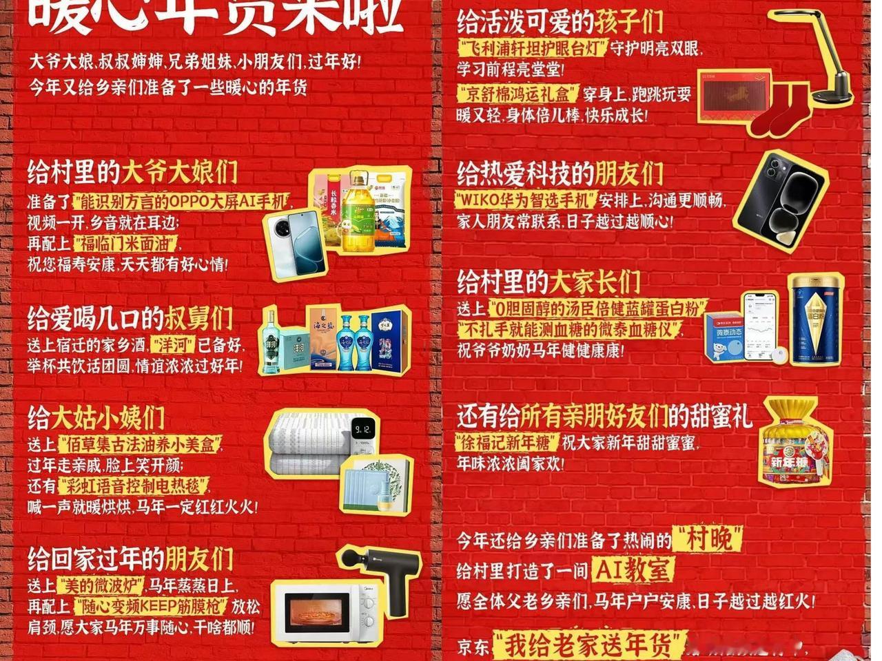 刘强东又给老家送年货啦!27日第一批年货就已经送到光明村啦,不仅准备了几十样礼品,刘强东还给村里搭建了一间AI教室,里面有好多玩的科技产品,孩子们在体验的同时,可以激发求知欲,太有意义啦! 今年的礼品有手机、酒、微波炉等,米面粮油,衣食住行应有尽有! 刘强东今年还在村子里搭了舞台,要举办自己的乡村晚会,让全村人都来热闹热闹。 村上的小喇叭已经喊起来啦,让大家把家里收拾收拾,腾出地方来,29日早上10点开始发放年货! 一直记得刘强东去年给村里60岁以上的老人发了1万元红包,小学老师每人发了10万元红包,着实让隔壁村羡慕哭了! 1992年,刘强东上大学时,家里穷拿不出学费,是村民们拿出两分钱、五分钱,最多的一块的,大家一起凑了500元和76个鸡蛋,让刘强东去北京上了大学。 村民本意是不图回报的,却不想刘强东是一个知恩图报的潜力股,他一直念着这份恩情,称要用一辈子来还! 这几年,刘强东拼命的为老家拉企业投资,捐款捐物,让村民们住上了别墅,过年还给大家发年货,村民扶我青志,我送村民万两金! 一人发达,全村都发达,喝水不忘挖井人,刘强东也用他的行动证明,他没有让大家失望!