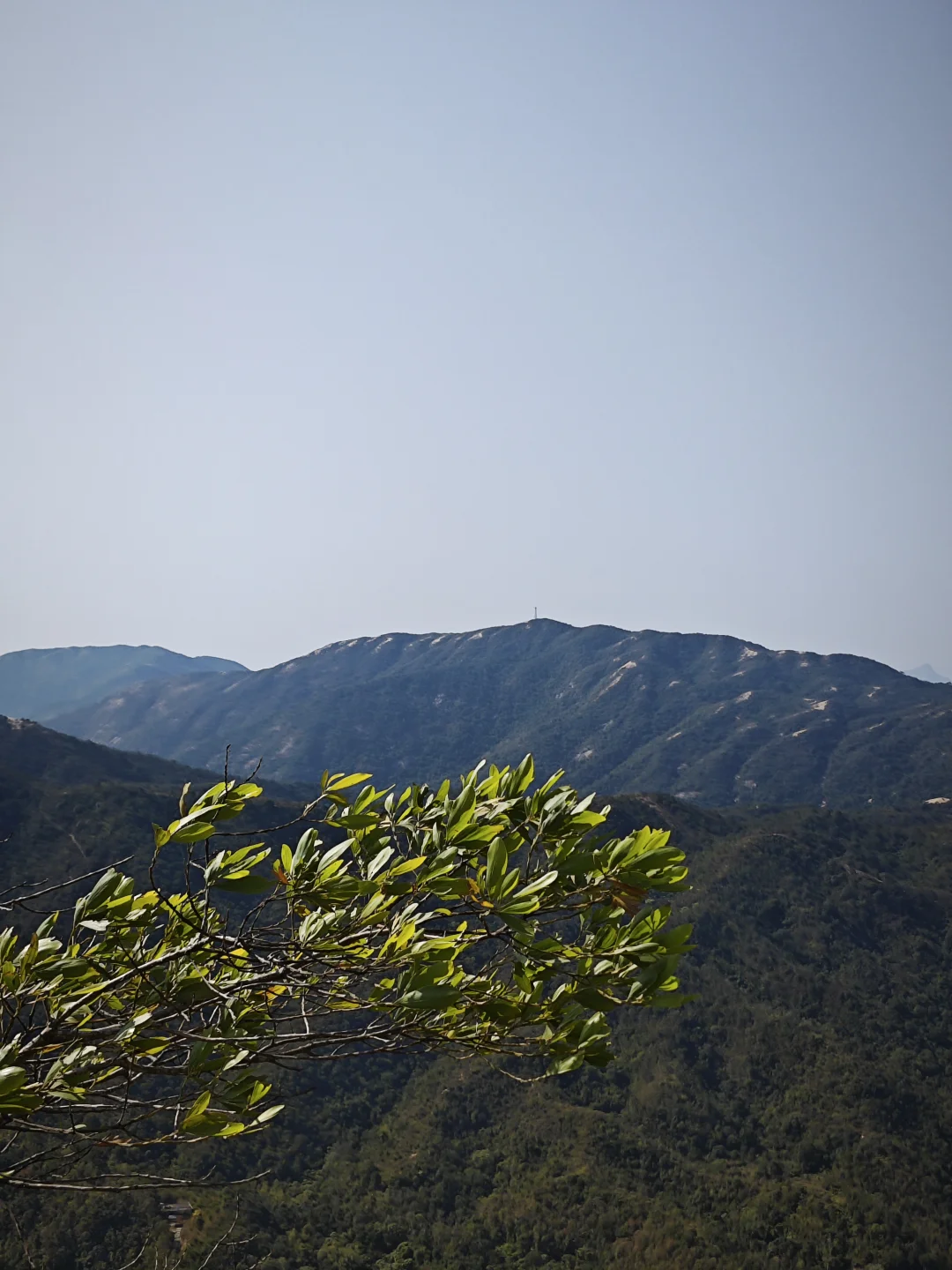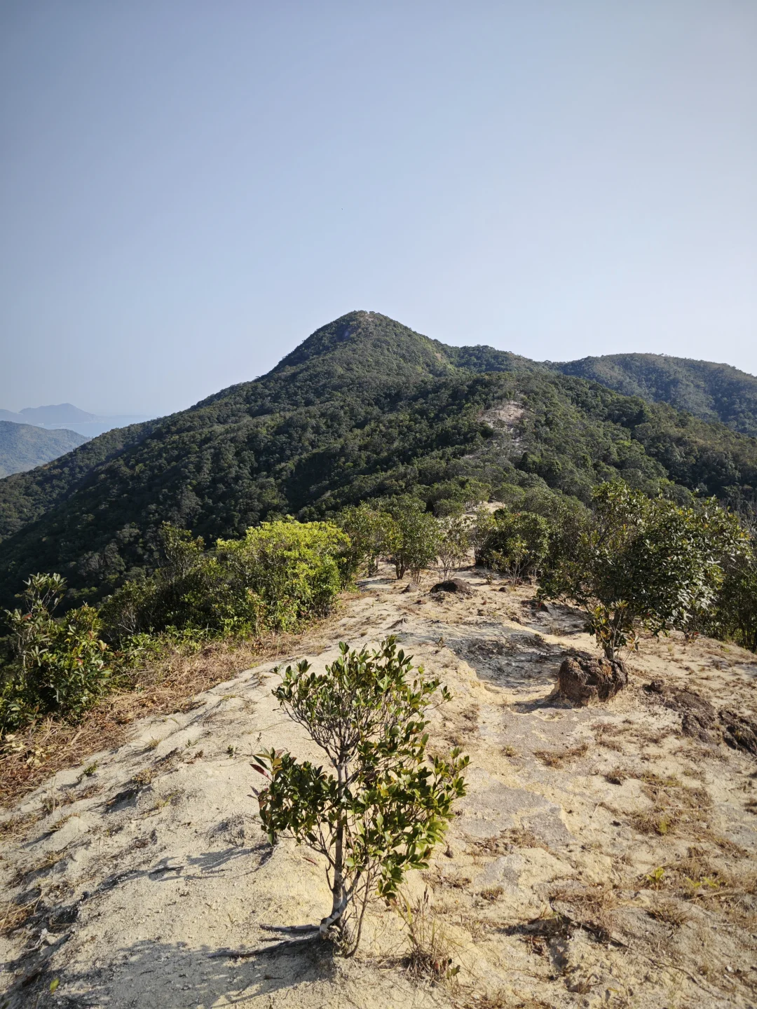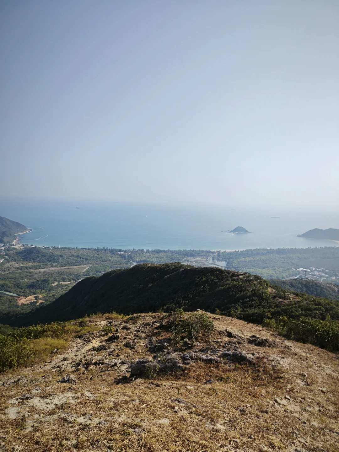 路线风景一般,离海比较远,山也不高,东边有高耸的七娘山拔地而起,西边有红花岭-抛狗岭山脊阻隔,只有在青山顶和矿山顶等高处视野开阔一点,可以仰望七娘山,俯瞰西涌沙滩,远眺天文台。