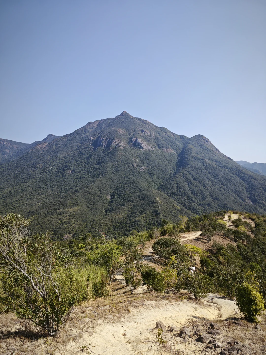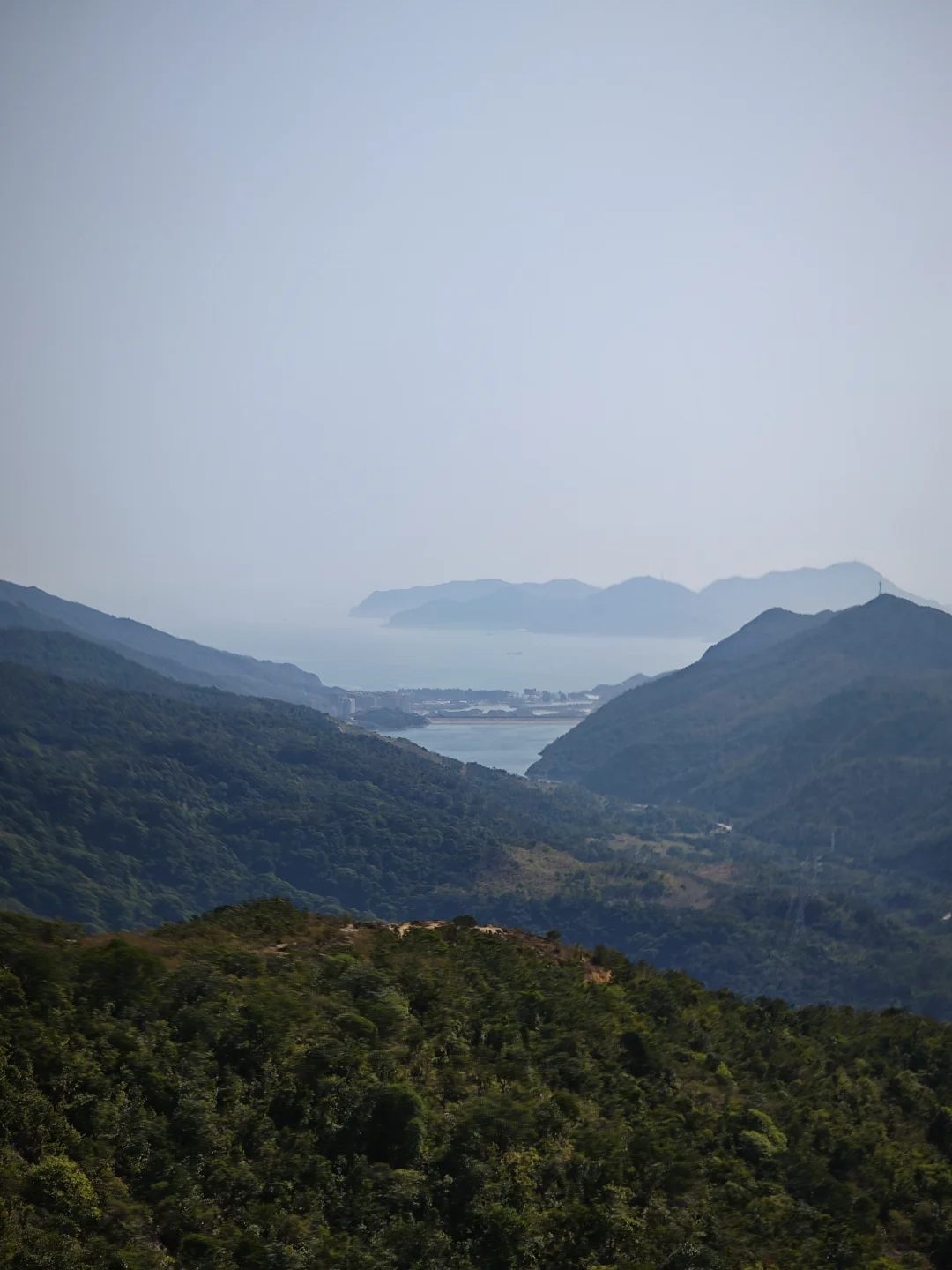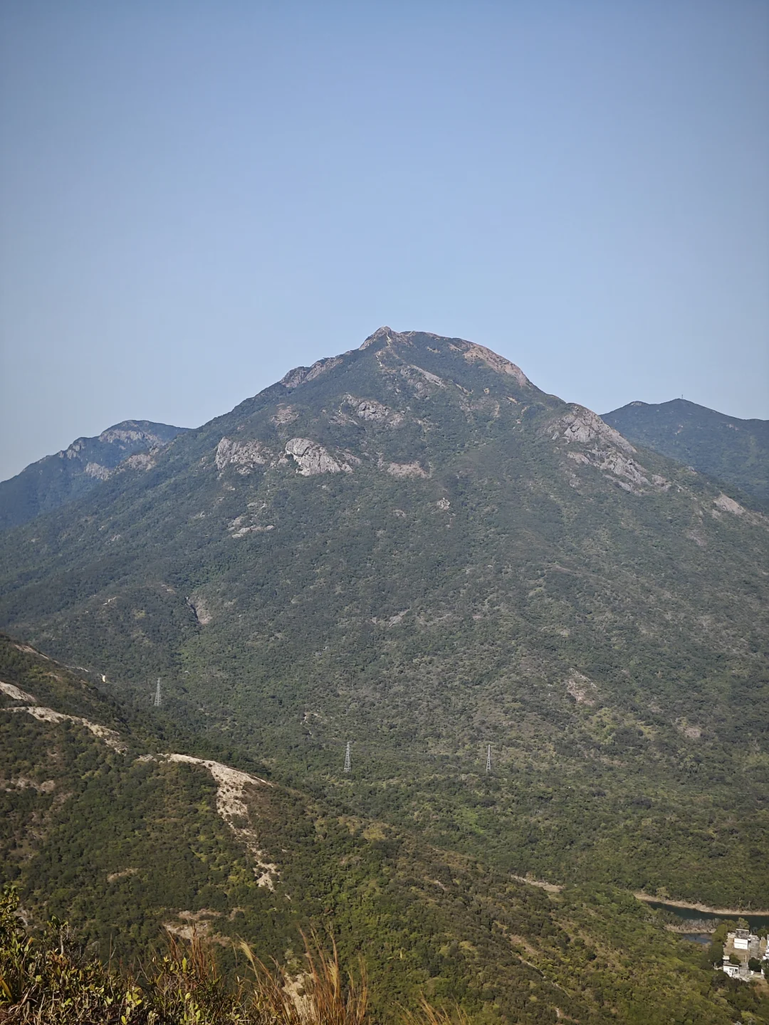 路线风景一般,离海比较远,山也不高,东边有高耸的七娘山拔地而起,西边有红花岭-抛狗岭山脊阻隔,只有在青山顶和矿山顶等高处视野开阔一点,可以仰望七娘山,俯瞰西涌沙滩,远眺天文台。