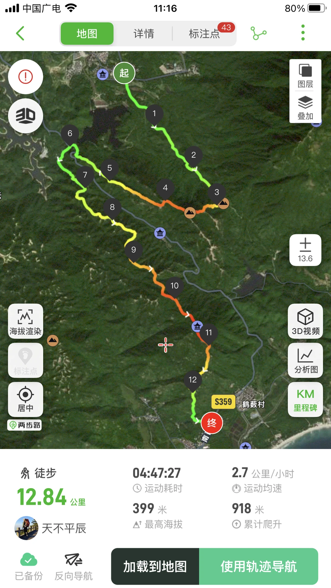 ❽累计爬升:918m