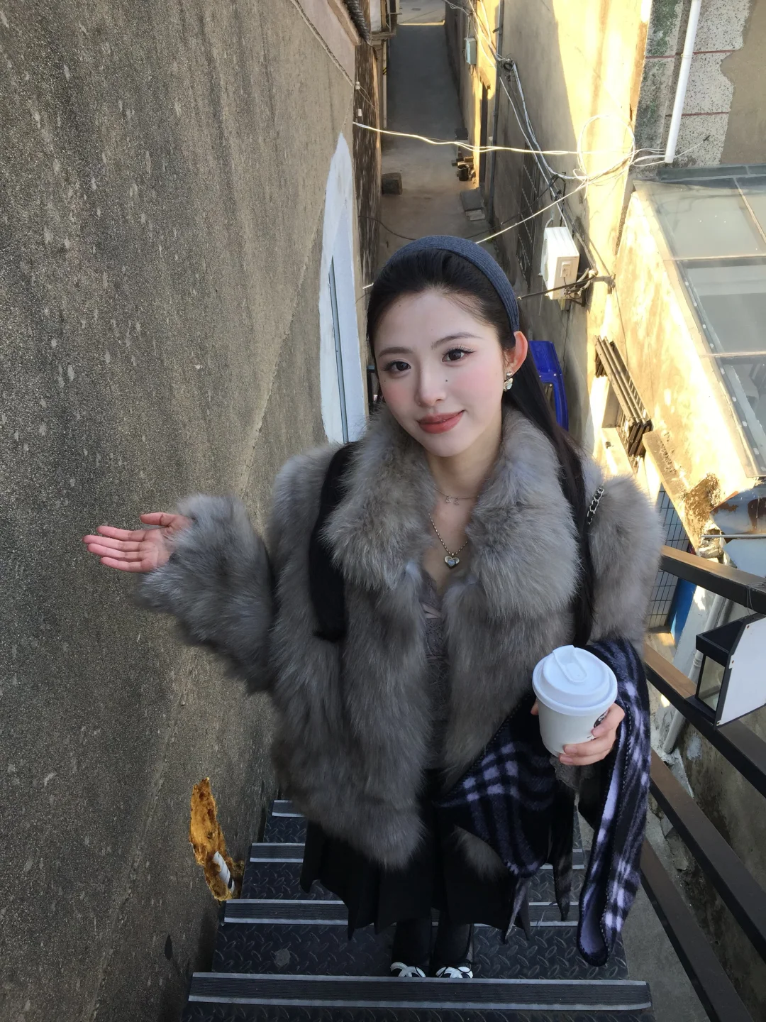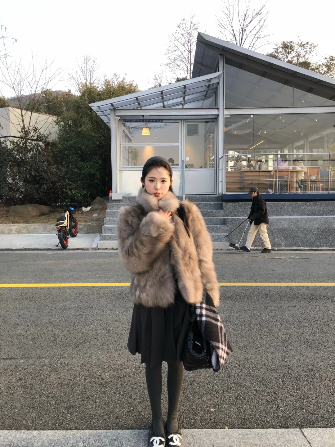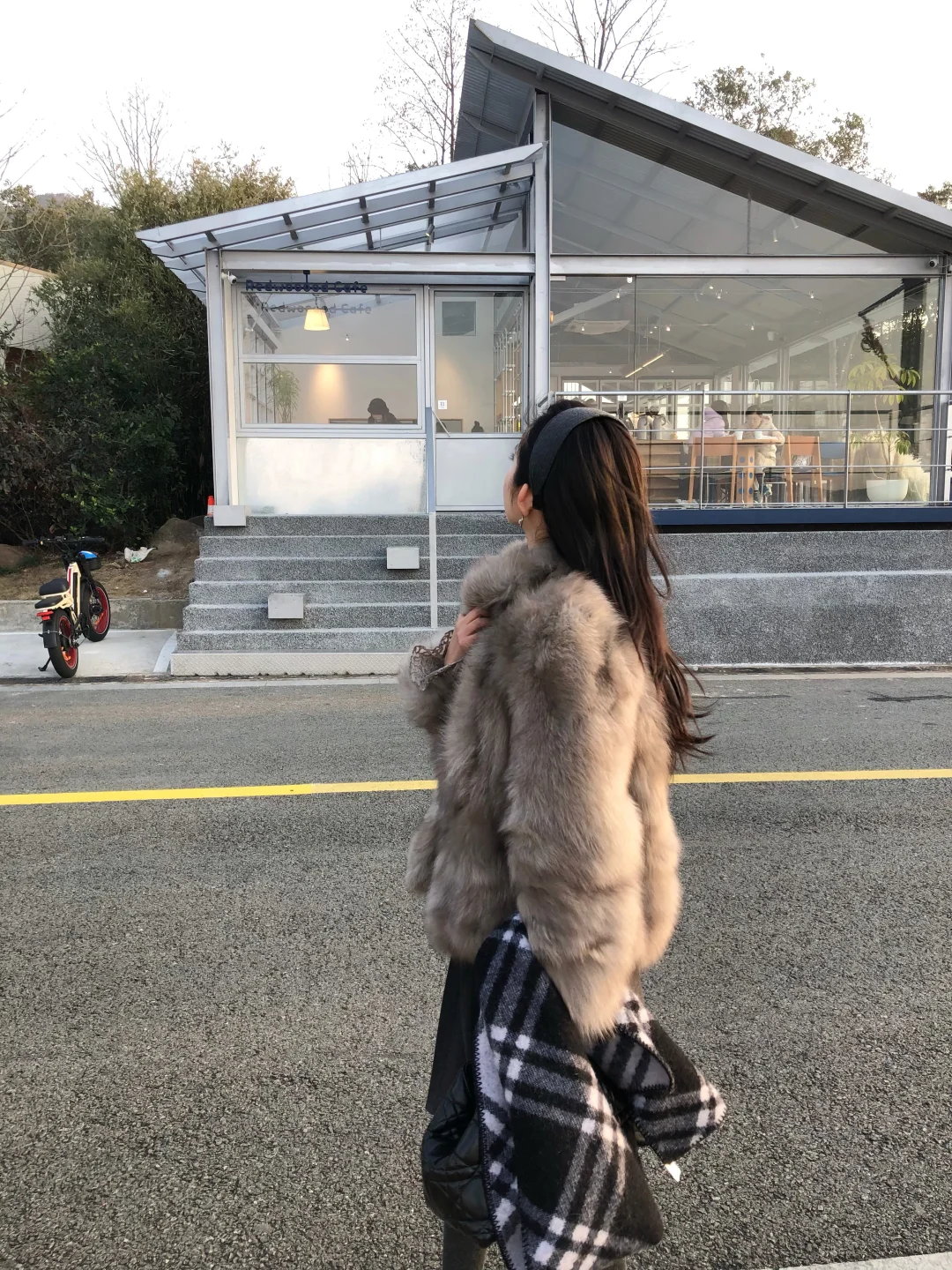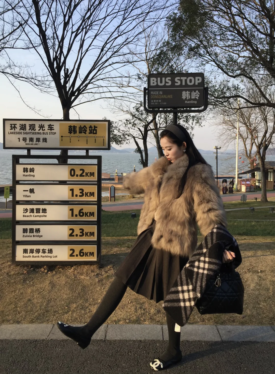 这个新咖啡店有一种首尔街头的感觉 喜欢慢慢悠悠逛东钱湖 傍晚湖边的风真不是盖的 但是这件皮草完全不漏风