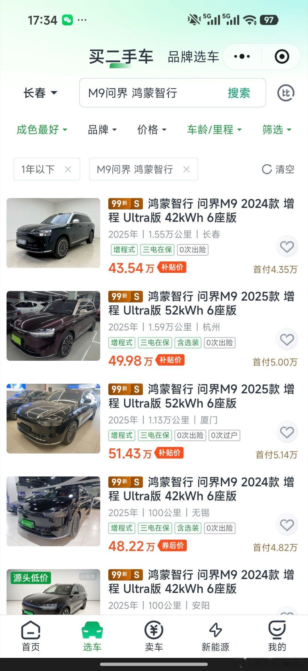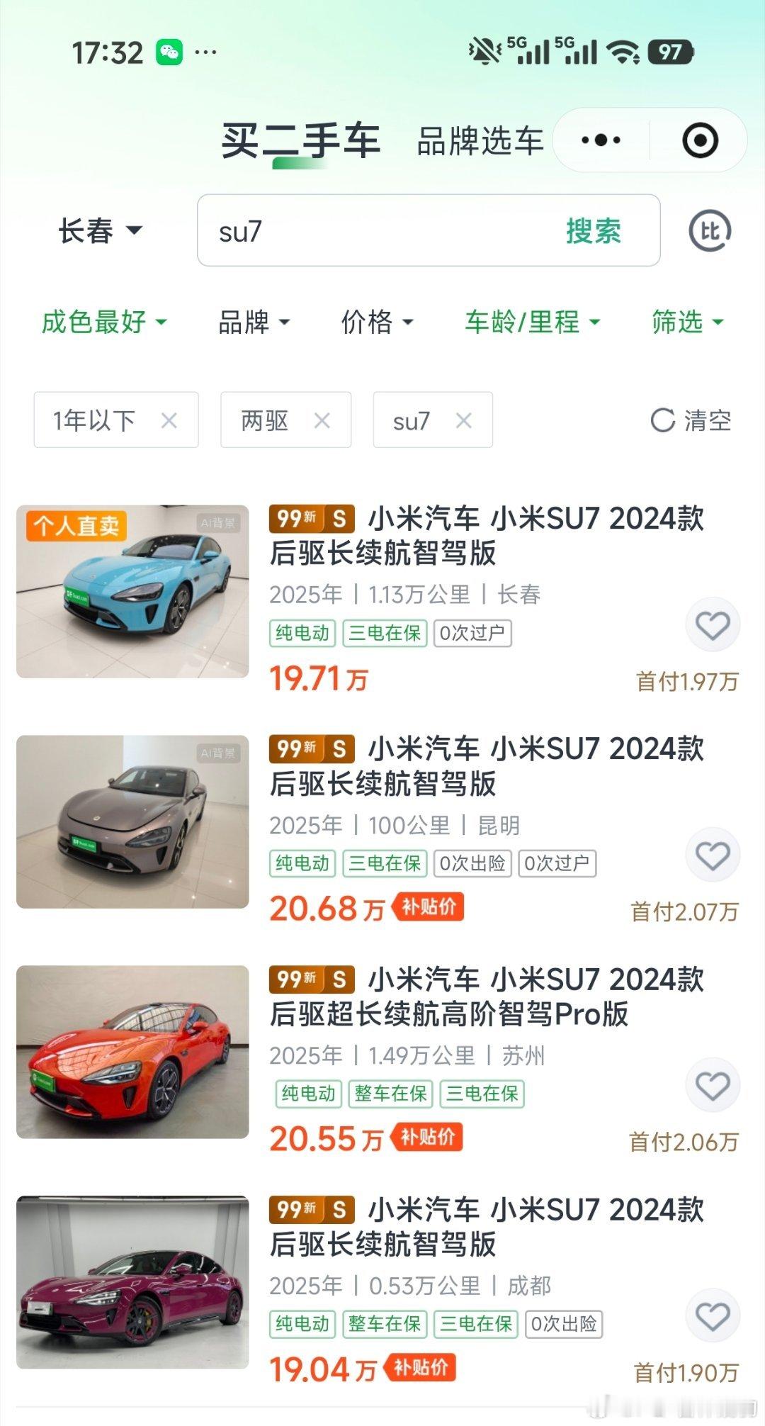 我们来看看这个一年保值率的真实性我分别截图瓜子二手车的数据对比看看小米SU7后驱长续航 92.6%=19.995/21.59理想mega home 92.2%=51.61/55.98问界M9 42kwh ultra 86.6%=45.88/52.98以上数字纯基于这一页截图数据,不具有整体代表性 雷军感谢用户认可