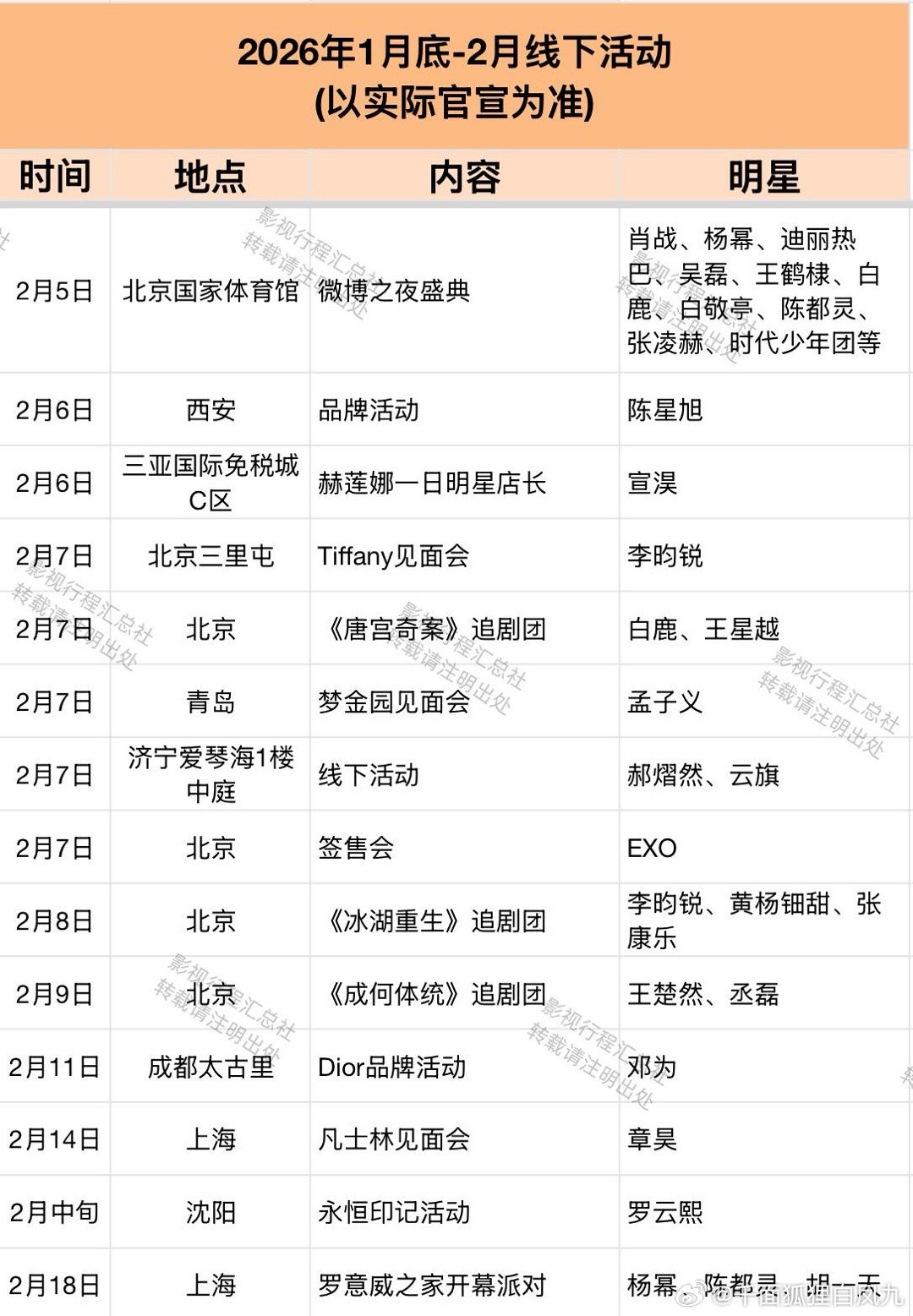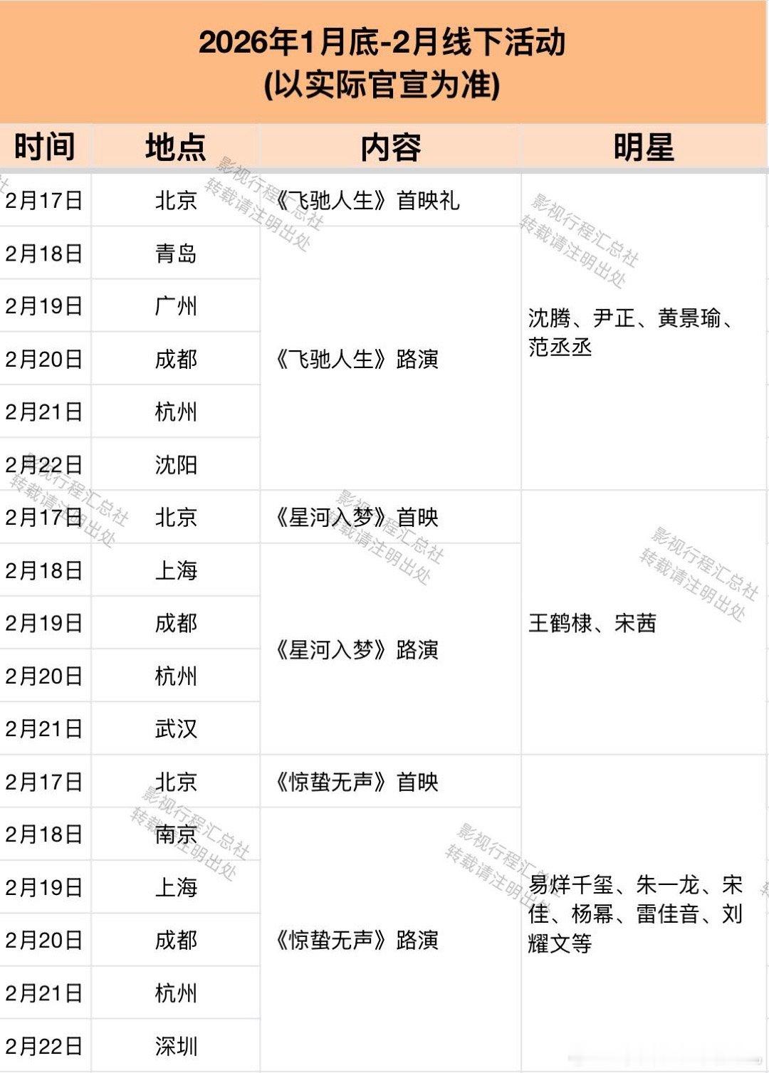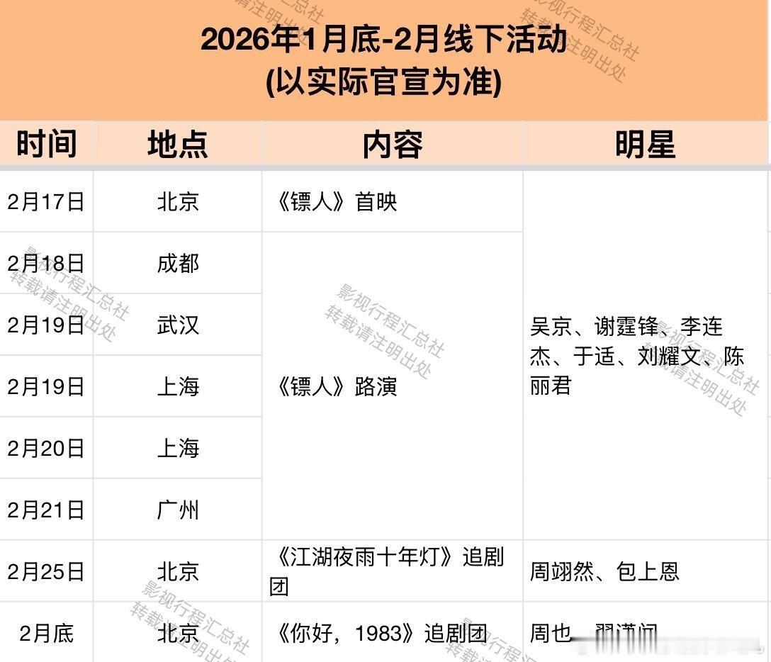 2026年1月底-2月线下活动(以实际官宣为准)