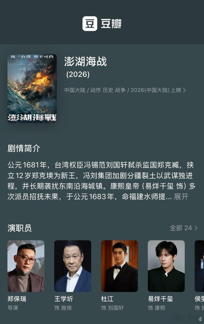 电影澎湖海战 的豆瓣条目无法标记,发生了什么事?澎湖海战