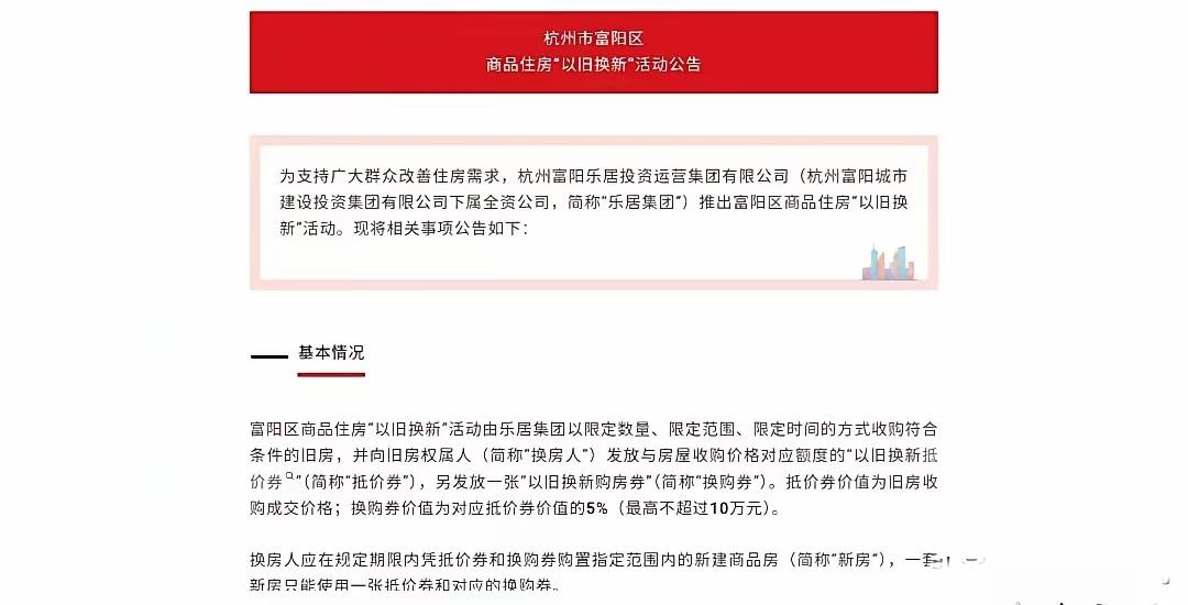 房子以旧换新真的来了!杭州富阳这次直接放大招, 政府旗下公司兜底收旧房,操作简