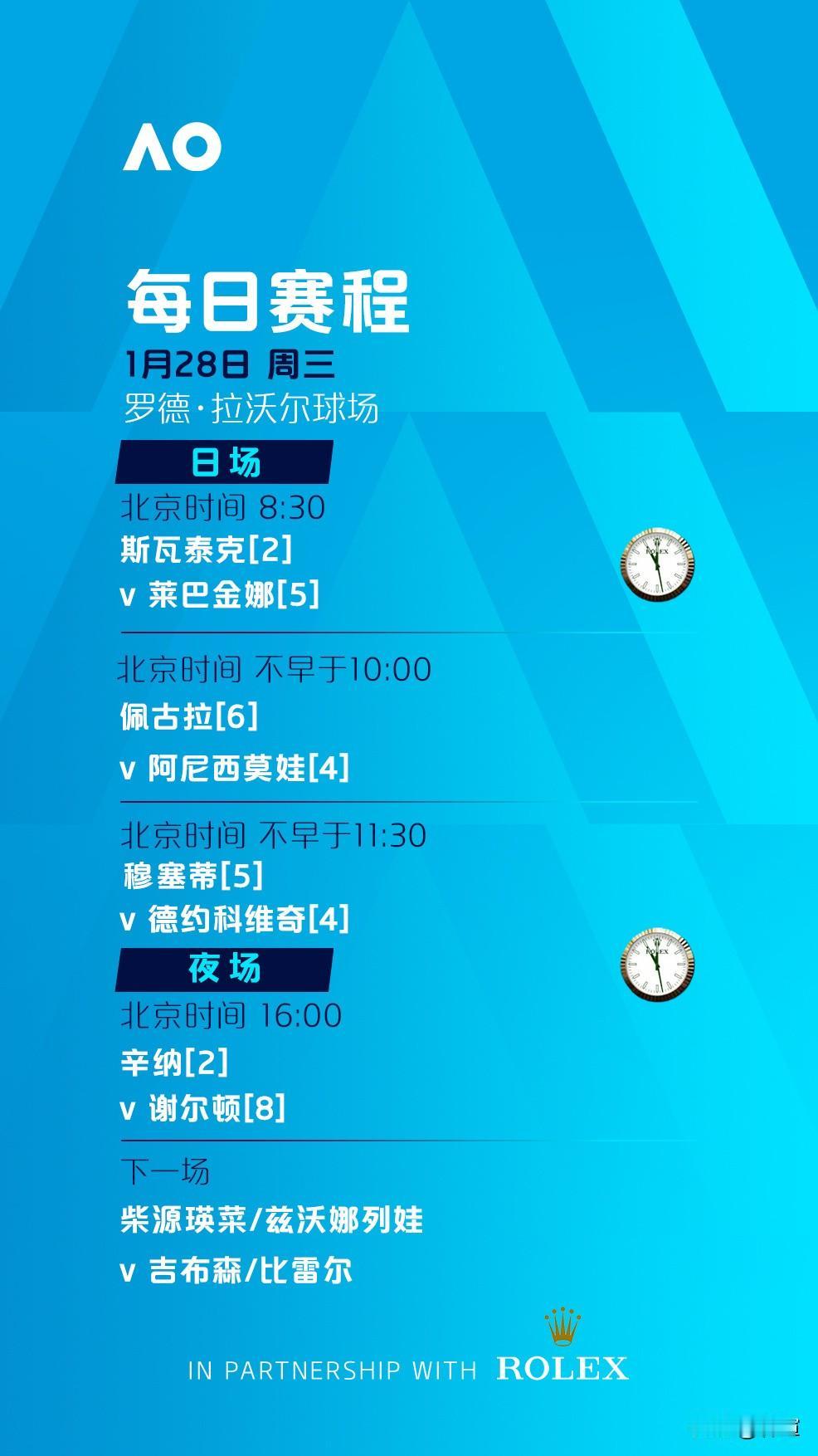 27日进行的澳网首个单打1/4决赛比赛日,高芙0-2速败斯维托丽娜无疑最让人吃惊。 28日进行的第二个单打1/4决赛比赛日,4场比赛依旧各具看点,所以,大胆再猜一波[打脸] 斯瓦泰克VS莱巴金娜:斯瓦泰克2-1莱巴金娜 阿尼西莫娃VS佩古拉:阿尼西莫娃2-0佩古拉 德约科维奇VS穆塞蒂:德约科维奇3-1穆塞蒂 辛纳VS谢尔顿:辛纳3-0谢尔顿。 这4场比赛中,最好看的可能是辛纳VS谢尔顿,而最具悬念的恐怕是两场女单1/4决赛。