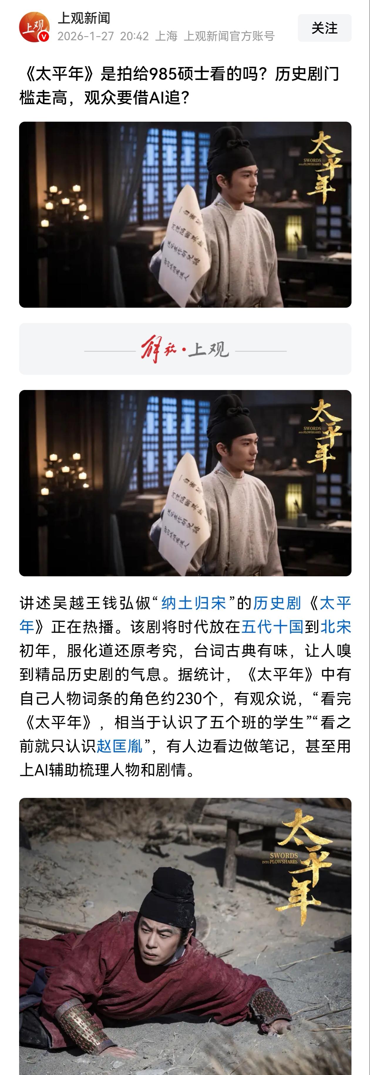 太平年是拍给985历史学硕士看的吗?反正你看懂了 ,五代十国历史课可以毕业了。很久没有如此大制作的历史大剧。浙江人应该看,因为这里曾经叫吴越,是五代乱世中独一份的太平。中国人应该看,因为何为宅兹中国,这里不仅是天下之中更是文明之中。