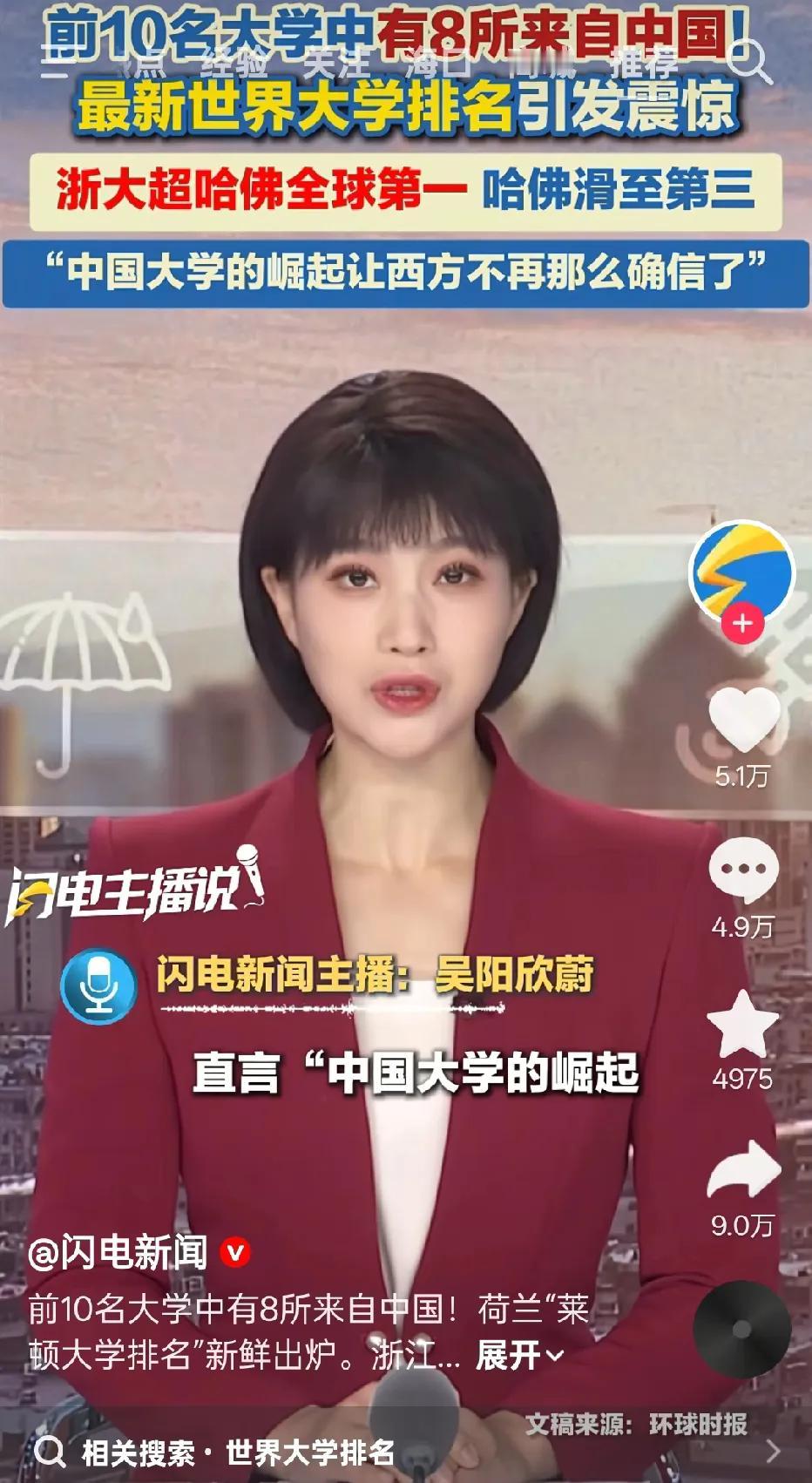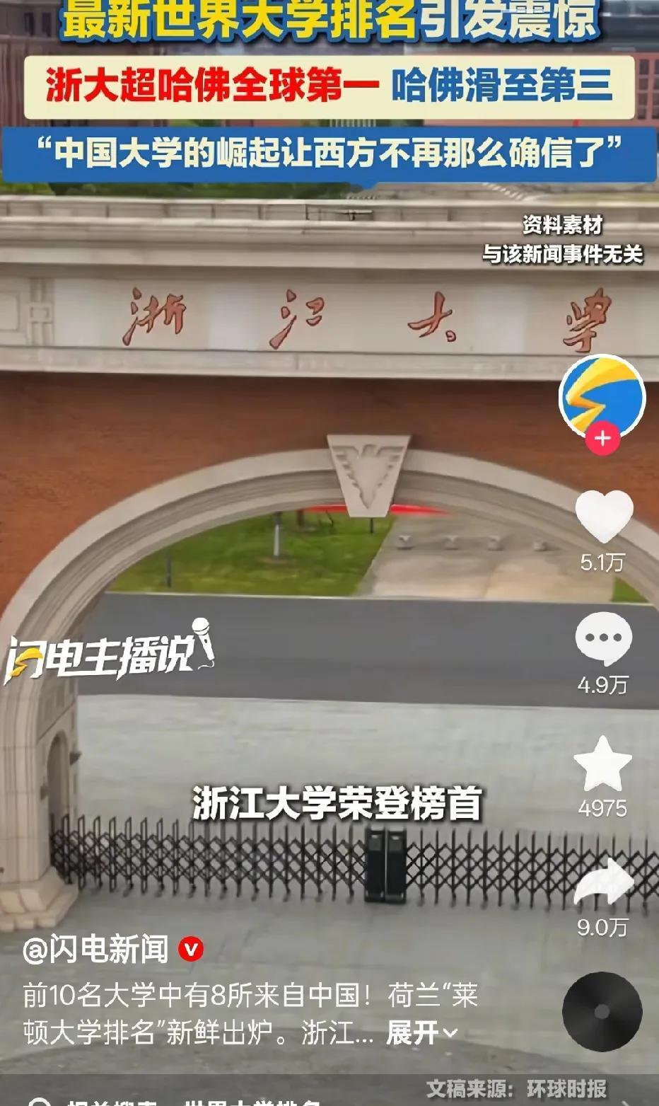 厉害了!浙江大学!排名第一!把美国的哈佛大学都比下去了!哈佛大学都落到了第3名。新鲜出炉的这份来自荷兰的“莱顿大学排名”中,前10名的世界大学里面,竟然有八所大学是来自我们这里! 看了一下名单,排名前10里,浙江大学排在世界大学里的第1名。而第2名,是来自我们的上海交通大学!第4名是四川大学,第5名是中南大学,第6名是华中科技大学,第7名是中山大学,第8名是西安交通大学,第9名是清华大学! 第10后,也是好多我们的大学,比如第11名是复旦大学,第12名是中国科学院大学,第13名是北京大学……没想到,前面有好多大学排在了清华北大前面! 仔细看了一下,这份排名里,全球排名前20名里,来自中国的大学就有16所!太夸张了吧! 印象里排在前面的大学,以前不是有很多是来自美国的,还有其他国家的?这一次,是怎么回事呢?什么标准拍的?