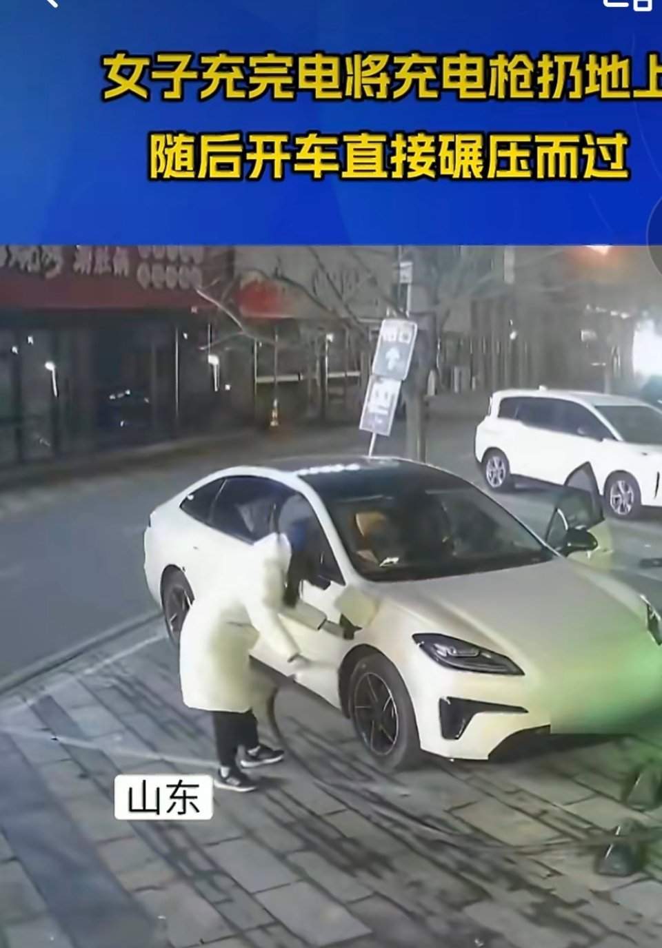 女子充完电扔充电枪开车碾压这种人,既没有教养,也没有脑子,更没有良心。教养是她不知道公共物品要爱惜;脑子是她不知道破坏公物是要赔偿甚至负法律责任的;良心是她根本不在乎会不会给下一位车主带来安全隐患。对于这种人,我只有一个建议:严查到底,该怎么赔怎么赔,该怎么罚怎么罚,千万别惯着! 让她知道,社会不是她家开的,没人有义务为她的任性买单。