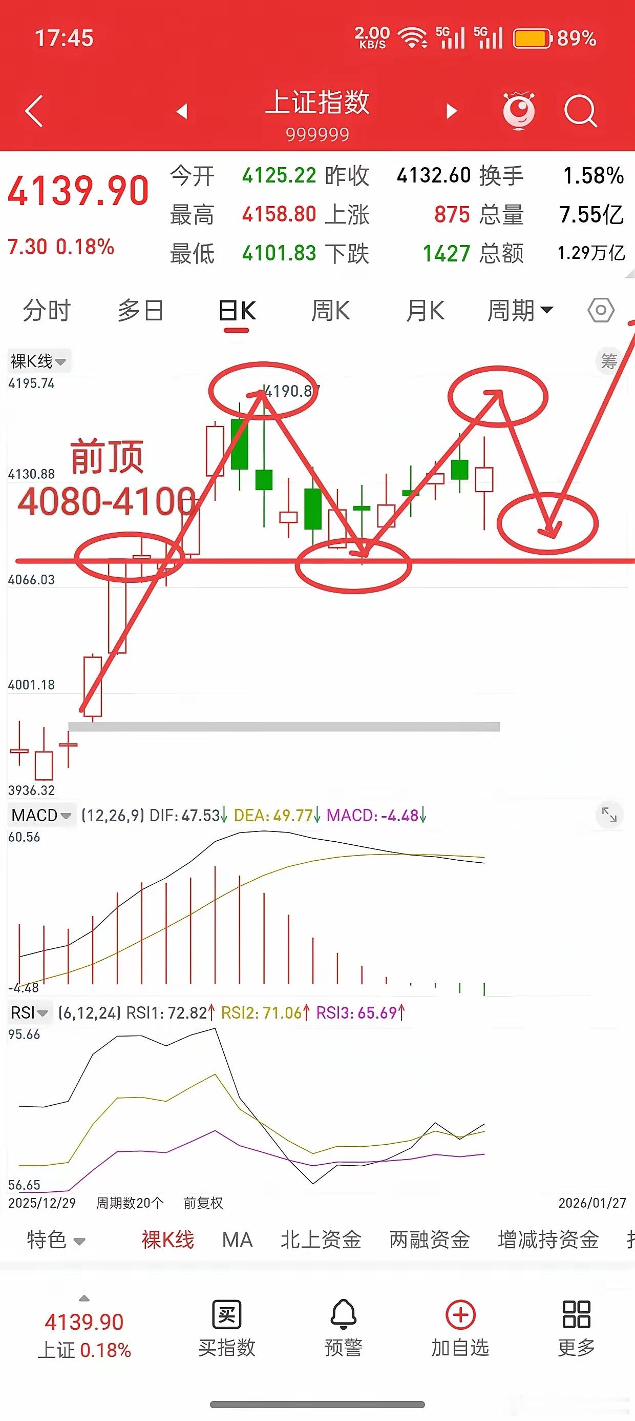 A股,缩量上涨还会涨,接下来行情很有可能冲击前高!先说观点,今天缩量3500多亿,缩量上涨还会涨,连续缩量,才需谨慎。当下观点很清晰,只有行情接近前高,或稍微突破前高,才有风险,因为那时需要警惕双顶。而当下,盘中出现回调,越靠近前顶4100附近,甚至4080-4100区间,都是机会大于风险,关键行情自从上周二跌到4080之后,最近都是震荡上行,所以,前面那个低如果错过了,后面再想着4080附近进场,很有可能踏空,甚至,后市真到了前高,然后二次探底,那个右底,大概率都会高于4080,因此不要指望能抄到最低点。包括,后市,只有收盘跌破前顶4080,行情才有风险。因此,接下来,继续看反弹,反弹高度看前高。