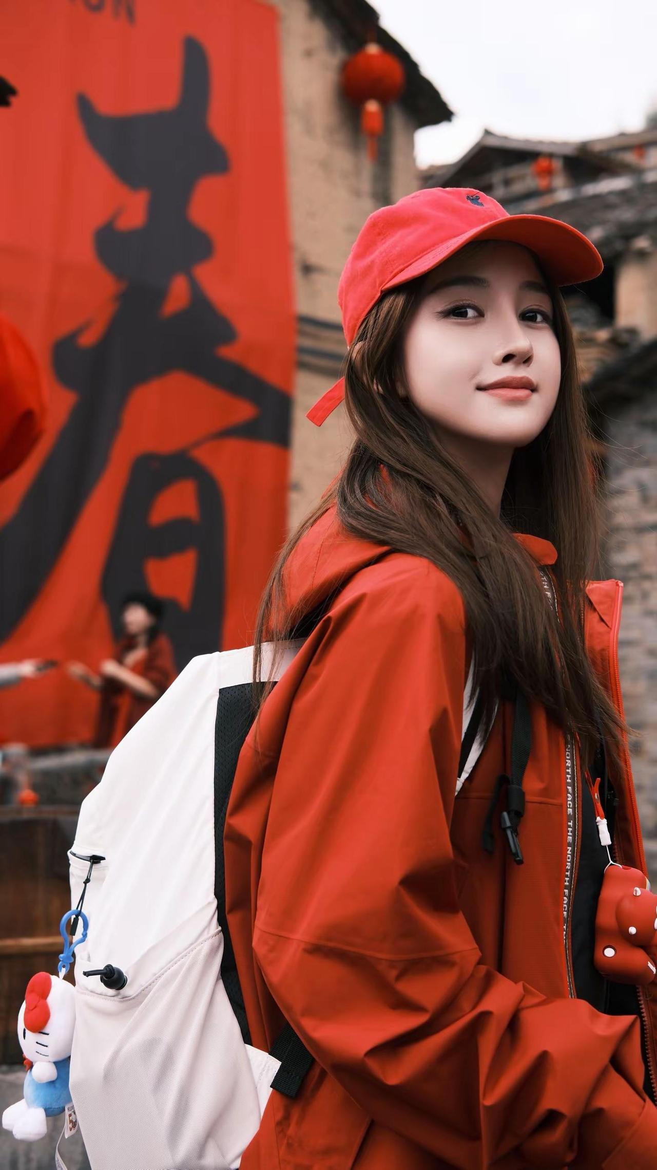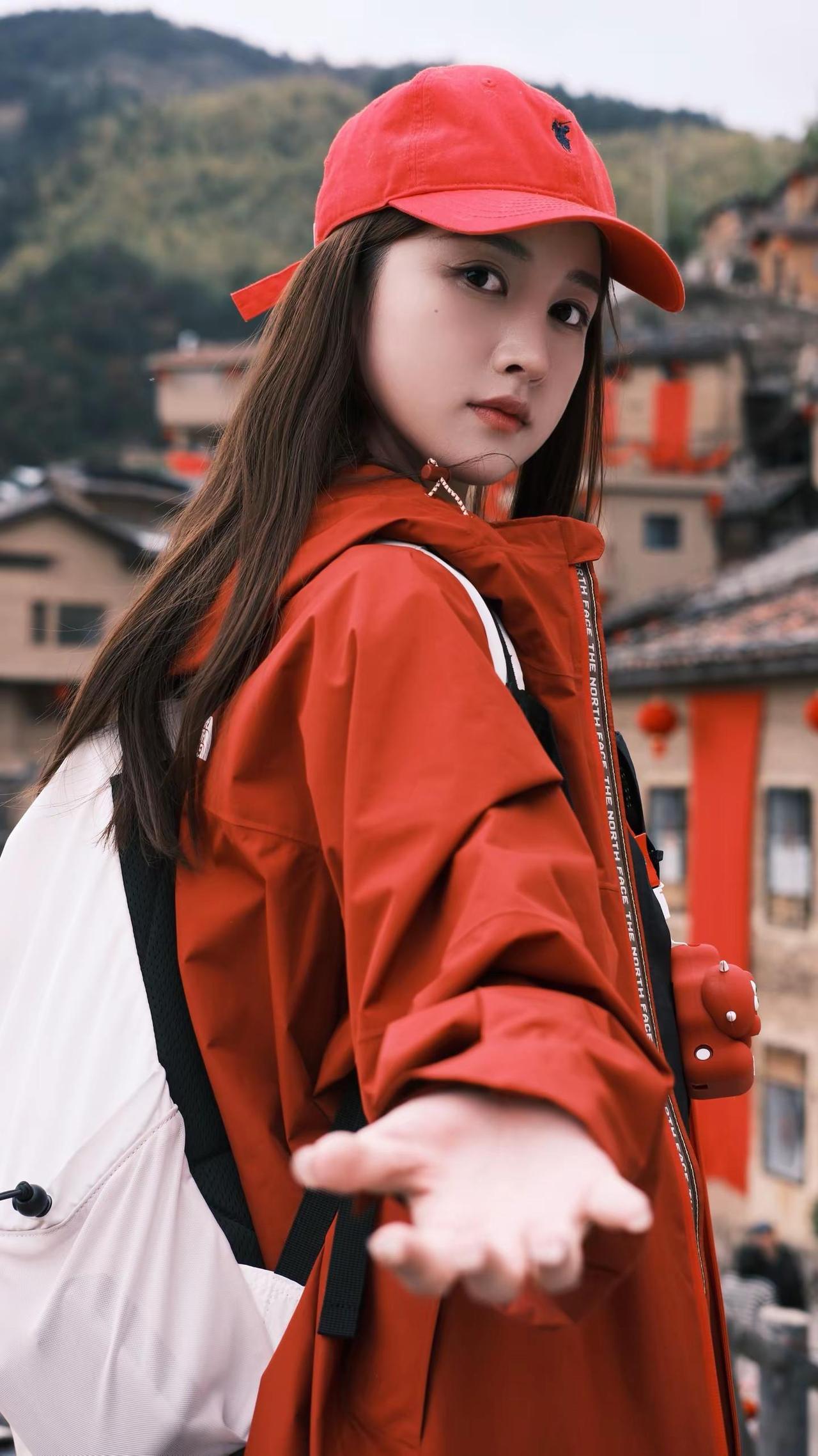 滩边红裙沐晴风海风裹着咸润的凉意,漫过沙滩细浪时,她正立在晴光里浅笑。