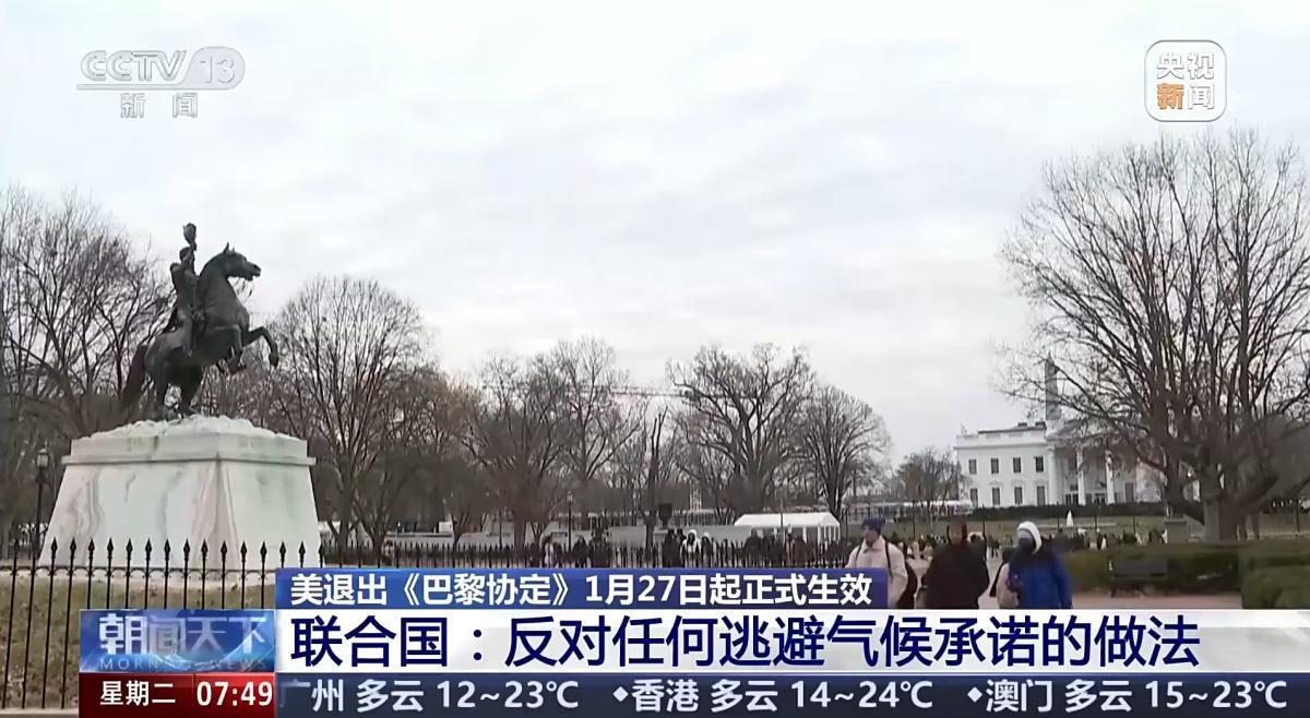 1月28日,据央视新闻客户端报道,1月27日美国退出《巴黎协定》正式生效。 从这一天起,美将不再履行协议中的承诺减排目标。业界人士认为,美国此举将消弱全球气候合作努力,并且损害美国自身经济竞争力和国际影响力。 评论,近期美国退出66个联合国机构和国际组织,凡是对美国不利的国际机构全部退出,美国总统特朗普真实目的就是建立以美国为首的联合国取代联合国的作用。[呲牙][呲牙][呲牙][呲牙][呲牙][呲牙]