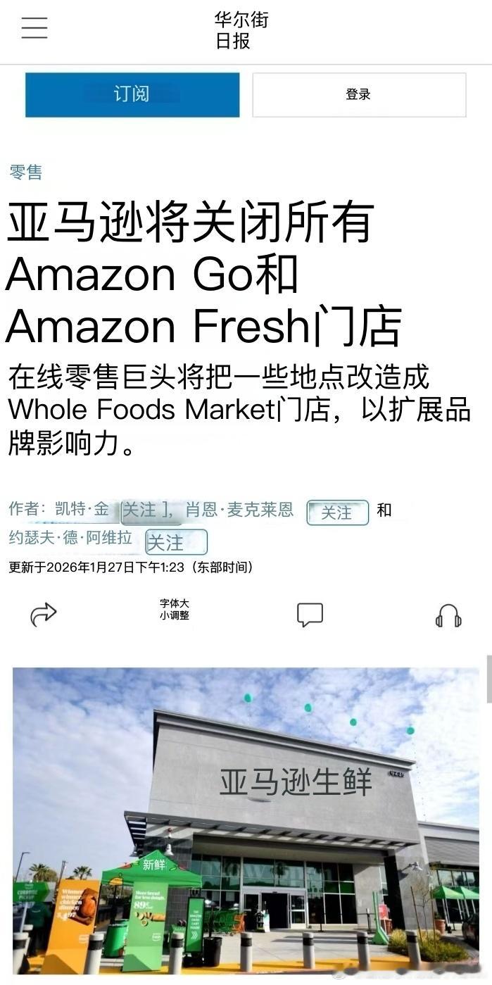 亚马逊宣布关闭所有生鲜门店 Amazon Go 和 Amazon Fresh, 线下店回归 Whole Foods… 电商搞实体零售超市还是不行