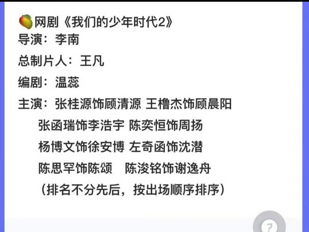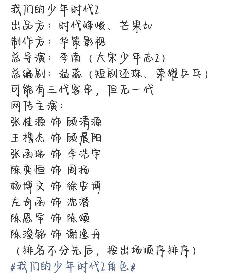 网传《我们的少年时代2》角色定了,蹲个准确瓜!到底谁演谁快官宣啊,本老粉蹲到心焦!咱说这IP刻着TFBOYS的名字吧,没原班人马不如改个名,省得各家粉丝掰头,大家看剧也舒心,多好~
