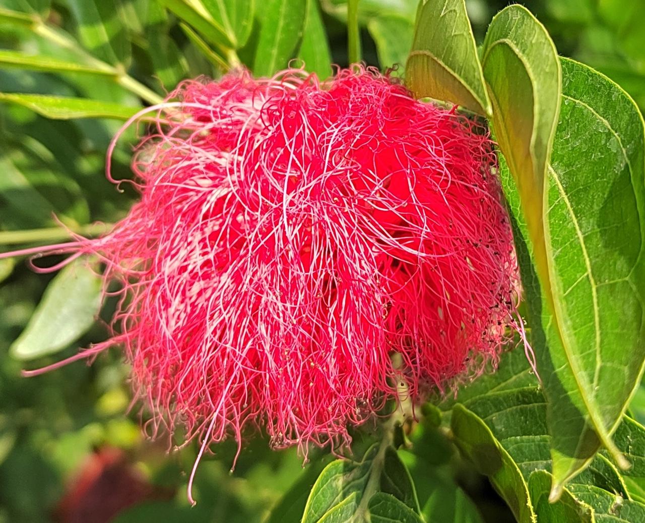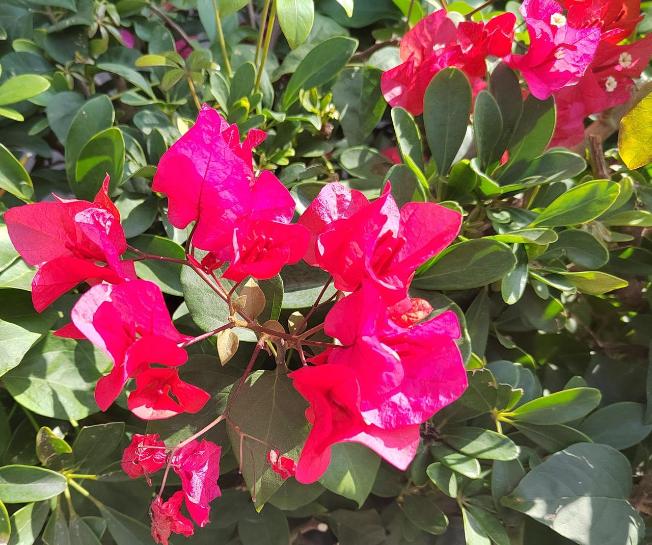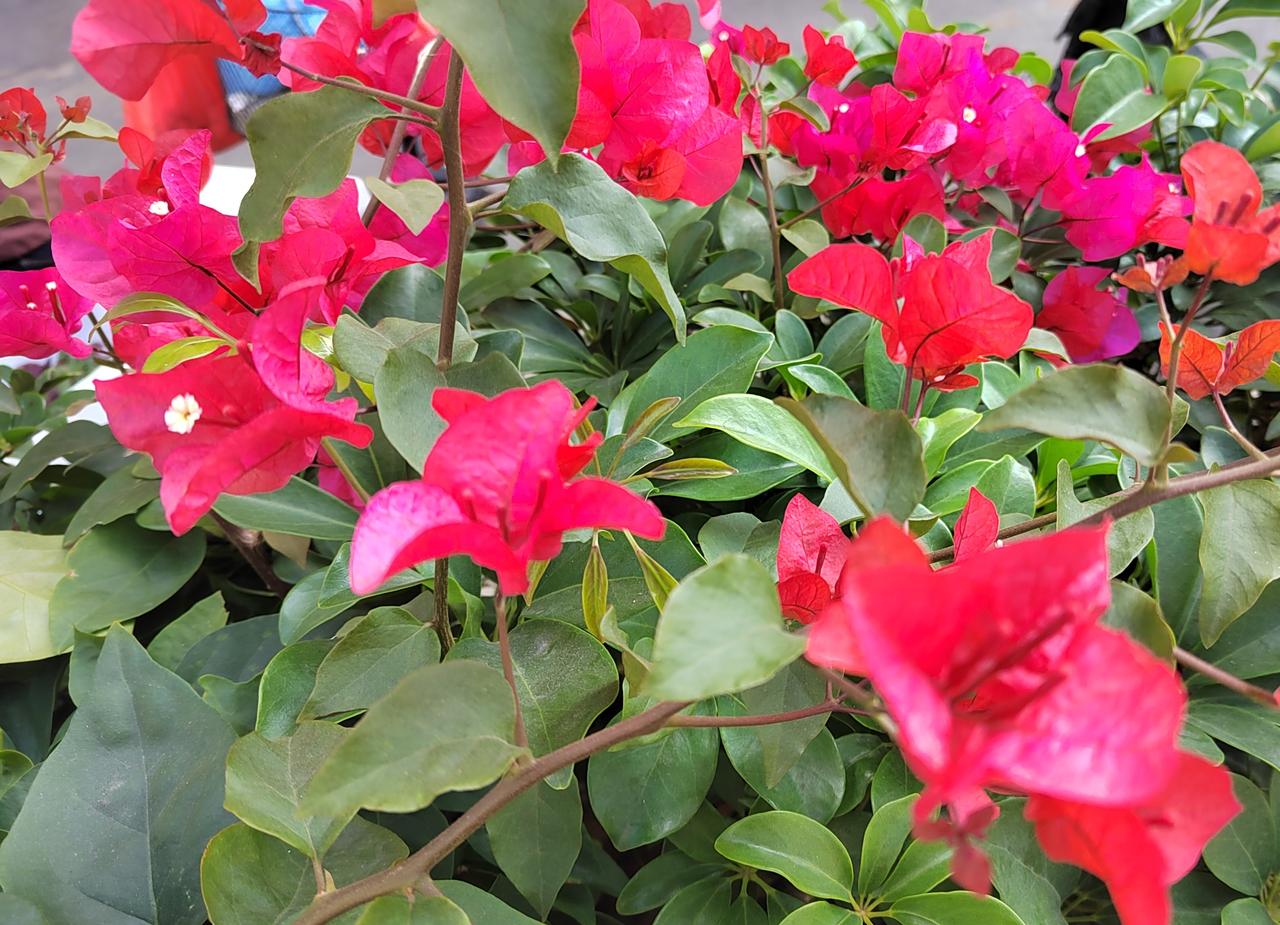 她不争春光,独爱这凛冽时节。墨绿的叶片托着碗口大的花朵,猩红如血,又似燃烧的火焰,在素白的冬景里烧出一个窟窿。花瓣层层叠叠,裹着金黄的花蕊,像是谁把一整个秋天的暖意都缝进了这朵花里。