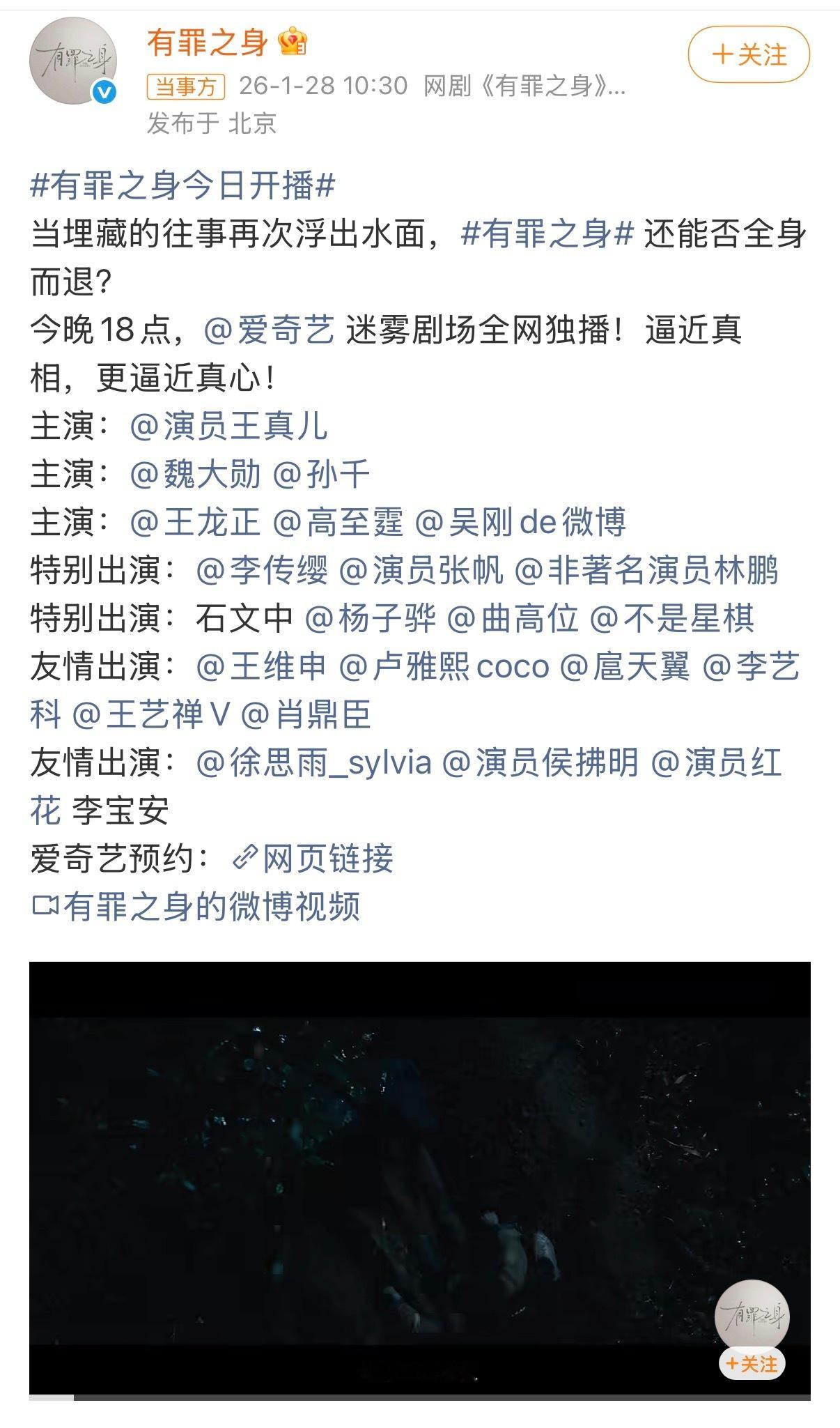 《有罪之身》今日空降开播,男女主咋被换行了,以前官宣的时候是这个顺序吗?