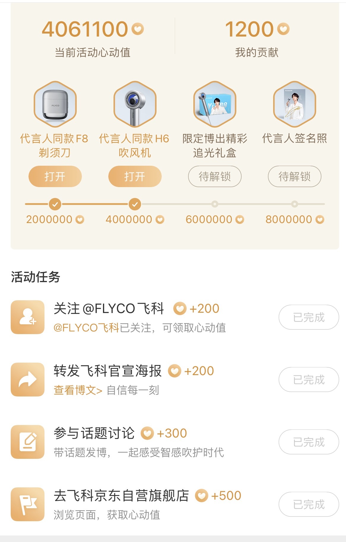 飞科主页解锁任务都来做!进👉网页链接四项必须做满,迅速完成✅王一博飞科品牌全球