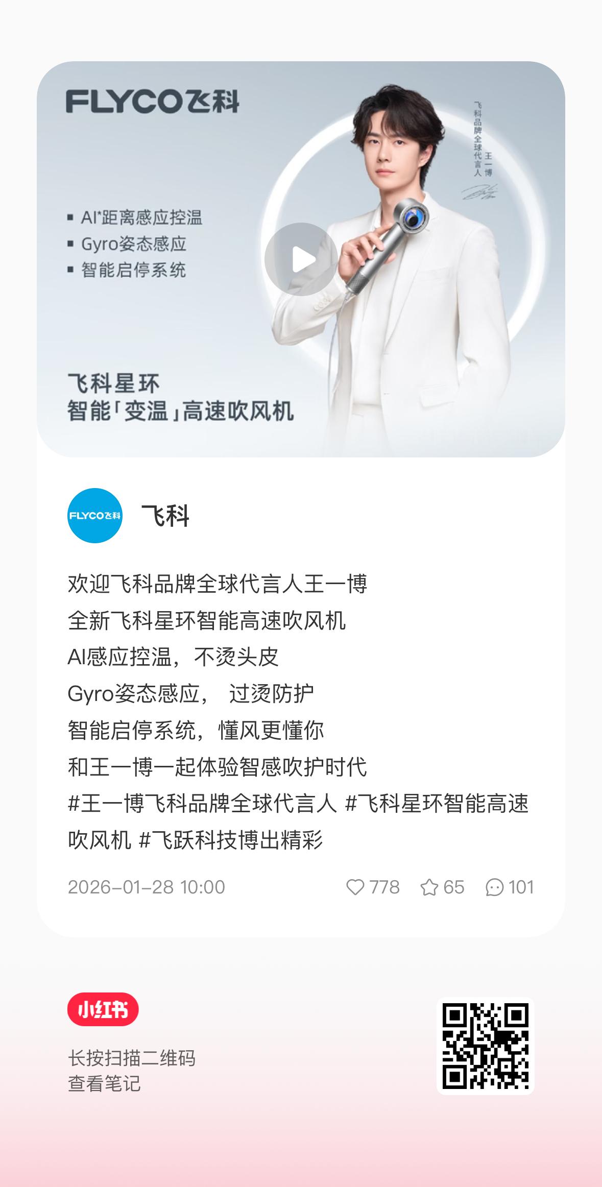 全平台官宣,除了微博其他平台跑一圈!!!多多互动小红书官宣(多四连)抖官宣两条(点推荐)Wx视频号官宣(点爱心,发朋友圈) 王一博飞科品牌全球代言人