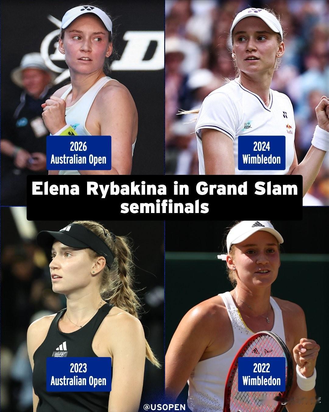 🇰🇿莱巴金娜打进个人第四个大满贯半决赛。 2022温网🥇 2023澳网 2024温网 2026澳网 今年会是什么成色?