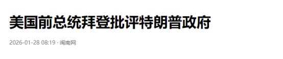 久未露面的美国前总统拜登北京时间1月27日晚发文批评特朗普政府:过去一个月在明尼阿波利斯发生的一切背叛了我们作为美国人最基本的价值观。我们不是一个在街头枪杀公民的国家。我们不是一个允许公民因行使宪法权利而遭受残暴对待的国家。 大家可能还不清楚明尼阿波利斯到底出了啥事,这地方其实早就出过名,2020年非裔男子弗洛伊德被警察跪杀,就引发了全美国的大骚乱。 没想到才过去几年,这里又因为执法人员开枪杀人乱了套,而且短短十几天里就出了两起,死者还都是美国本土公民,这就难怪全美民众都炸了锅,连拜登都忍不住发声了。 第一起事发生在1月7号上午,被打死的是37岁的蕾妮·古德,她是正经的美国公民,还是个已故退伍军人的妻子,家里还有个6岁的孩子。 当天她送完孩子上学开车回家,刚好碰到联邦移民执法局的人在搞抓捕行动。本来她不是执法目标,就是路过而已,监控录像显示她的车在路边停了好几分钟,也没主动招惹执法人员。 可就是这样,有个执法人员走到车跟前,要求她开车门,古德想倒车躲开,那名执法人员居然直接近距离对着她的脸部开了枪,车子失控撞了路边的车,古德当场就没了性命。 更让人愤怒的是,事发后特朗普政府不仅不认错,还倒打一耙。国土安全部部长说古德是想驾车撞执法人员,属于“国内恐怖主义”行为;特朗普本人也表态,说古德是阻挠执法、蓄意碾压执法人员,死了是活该;副总统更是直接说这是她“咎由自取”。 可明眼人都看得清楚,古德就是个普通市民,要是真要冲撞执法人员,何必先在路边停那么久?而且她只是想倒车离开,根本没给执法人员造成威胁,这分明就是执法人员滥用武力。 这事还没平息,1月24号上午,明尼阿波利斯又出了一起枪击案。37岁的亚历克斯·普雷蒂被联邦执法人员打死了,他是当地医院的急诊室护士,也是美国公民,还持有合法的持枪许可。 关于这起案子,执法部门和现场视频的说法完全对不上。国土安全部说普雷蒂持枪靠近执法人员、暴力反抗,执法人员是自卫开枪;可现场流传的视频显示,当时7名执法人员围着普雷蒂,想把他跪压在地,搏斗中响了一枪,普雷蒂倒地后,还有执法人员朝他补了几枪。 而且有视频证明,普雷蒂当时手里拿的是手机,可能是想拍执法过程,根本不是枪。 短短十几天,两名美国公民被联邦执法人员当街枪杀,换谁都无法接受。 明尼阿波利斯的民众彻底怒了,先是有人在执法人员住的酒店外敲锅打鼓抗议,后来全美数十个主要城市都爆发了上千场示威活动,大家举着标语要求“废除联邦移民执法局”“停止暴力执法”,还有人为受害者家属筹款,短短几天就筹了近84万美元。 当地官员也站出来反对,州长说要追究到底,甚至准备调动国民警卫队;市长更是直接爆粗口,让联邦执法局滚出自己的城市,说不欢迎他们。 拜登就是在这样的背景下发的文,他不光指责了执法乱象,还明确要求对这两起命案进行全面、公正、透明的调查。 要知道,拜登卸任后很少公开批评现任政府,之前就算发言也没指名道姓,这次直接把矛头对准特朗普政府,甚至点出“就算是总统,也不能摧毁美国的立国之本”,可见他对这事有多不满,也说明特朗普政府的执法问题已经到了藏不住的地步。 其实特朗普政府的执法乱象早有苗头,他上台后就给警察获取军事装备松绑,让装甲车、狙击枪这些本该用于战场的装备,成了不少警察局的标配,还鼓励警察执法时“不要太友好”。 这次在明尼阿波利斯的执法行动,更是调了2000多名执法人员,搞所谓的“最大规模”移民抓捕,还设定了高额的逮捕指标,为了完成任务,执法人员自然就肆意妄为。 更离谱的是,在当地执行任务的执法人员还不用戴执法记录仪,出了事之后各说各的,根本没法核实真相,这就给暴力执法开了绿灯。 现在这事已经不只是执法问题了,还引发了美国政府的预算危机。参议院民主党领袖舒默明确表态,要是新的支出法案里包含给国土安全部的拨款,他就带头反对。 因为大家都清楚,给这个部门拨款,相当于默许他们继续滥用职权、暴力执法。而特朗普政府要是拿不到拨款,联邦政府下周就可能面临部分停摆,这也让美国内部的分歧越来越大。 拜登这次罕见开炮,其实也是说出了不少美国人的心声。美国一直标榜自己讲人权、讲法治,可现实却是执法人员在街头随便枪杀公民,政府还百般包庇。这两起命案不是偶然,是特朗普政府强硬执法政策下的必然结果,只顾着搞政治算计,根本不管民众的生命安全。 接下来就看特朗普政府怎么应对了,是真的开展公正调查、约束执法人员,还是继续硬扛、掩盖真相。但不管怎么说,这两起命案已经撕开了美国执法乱象的口子,民众的抗议不会停,政坛的分歧也会越来越明显。