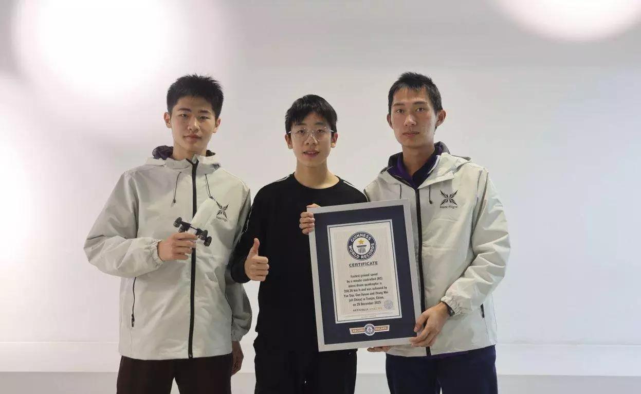 三个中国少年造出“空中子弹”,358公里时速打脸“躺平论”! 你信吗?三个天津的16岁少年,用不到一听可乐重的无人机,干出了比高铁还快的速度!最近,姚思齐、郭继元、张威这三个高中生,以358.36公里/小时的成绩,直接刷新了吉尼斯世界纪录。别人家孩子玩无人机是“炸机”,他们玩出了国际水平的“中国速度”! 这哪是简单的航模比赛?这是一场硬核的青春突围!团队分工明确,设计、调试、飞行各司其职,失败了就一起熬夜复盘,机架碎了重新建模,电池冻坏了预热解决。最燃的是,他们把全部设计开源分享,直接喊话全球爱好者:“来超越我们!”——这种自信,才是中国少年该有的格局! 有人说这一代年轻人“躺平”,可这三位用行动证明:中国娃的征途是星辰大海!他们不刷题内卷,却在科技赛场上为国争光;不追求网红流量,却用实打实的工程思维让世界侧目。从纸飞机到微型无人机,中国少年正在每一个角落突破极限。 你16岁时在干嘛?身边有没有这种“别人家的孩子”?低空飞行黑科技 低空飞行器制造