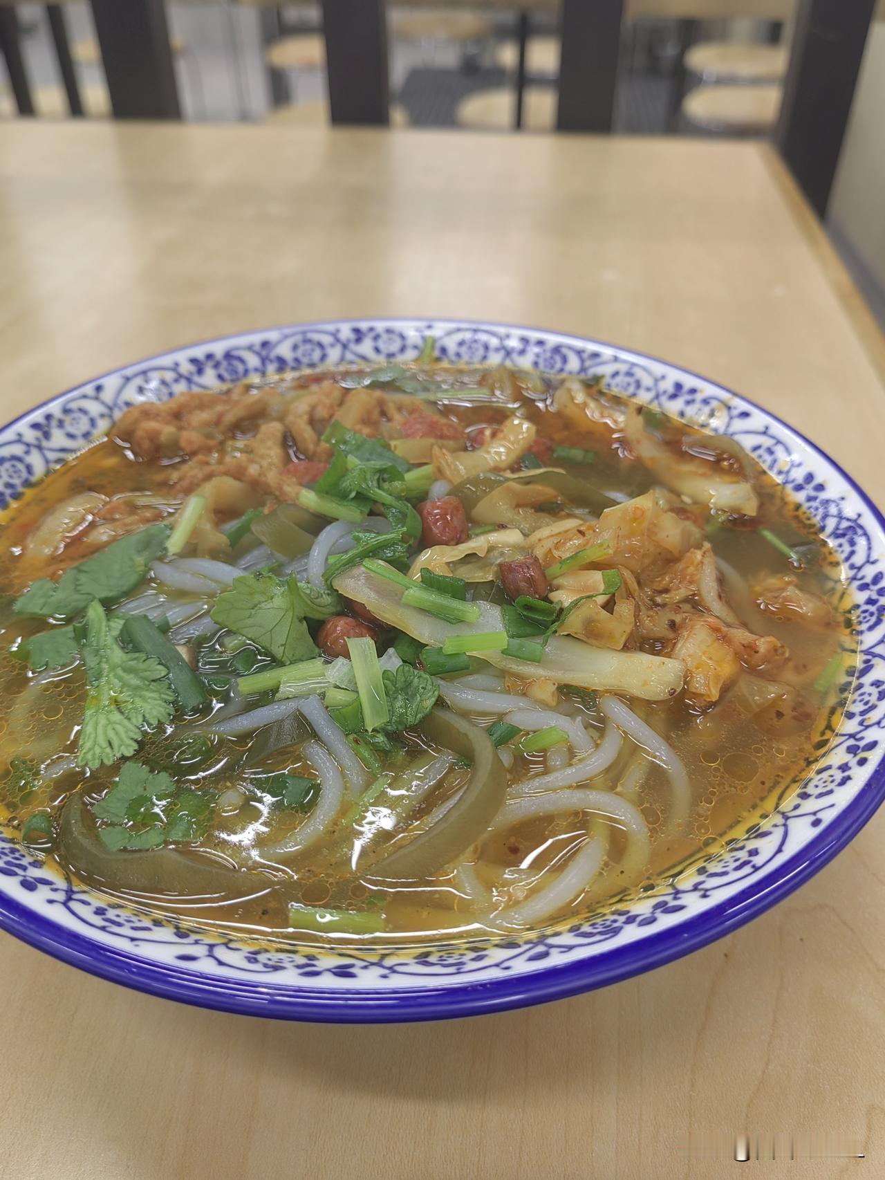 一碗热气腾腾的米线,配上新鲜的香菜和葱花,色香味俱全。