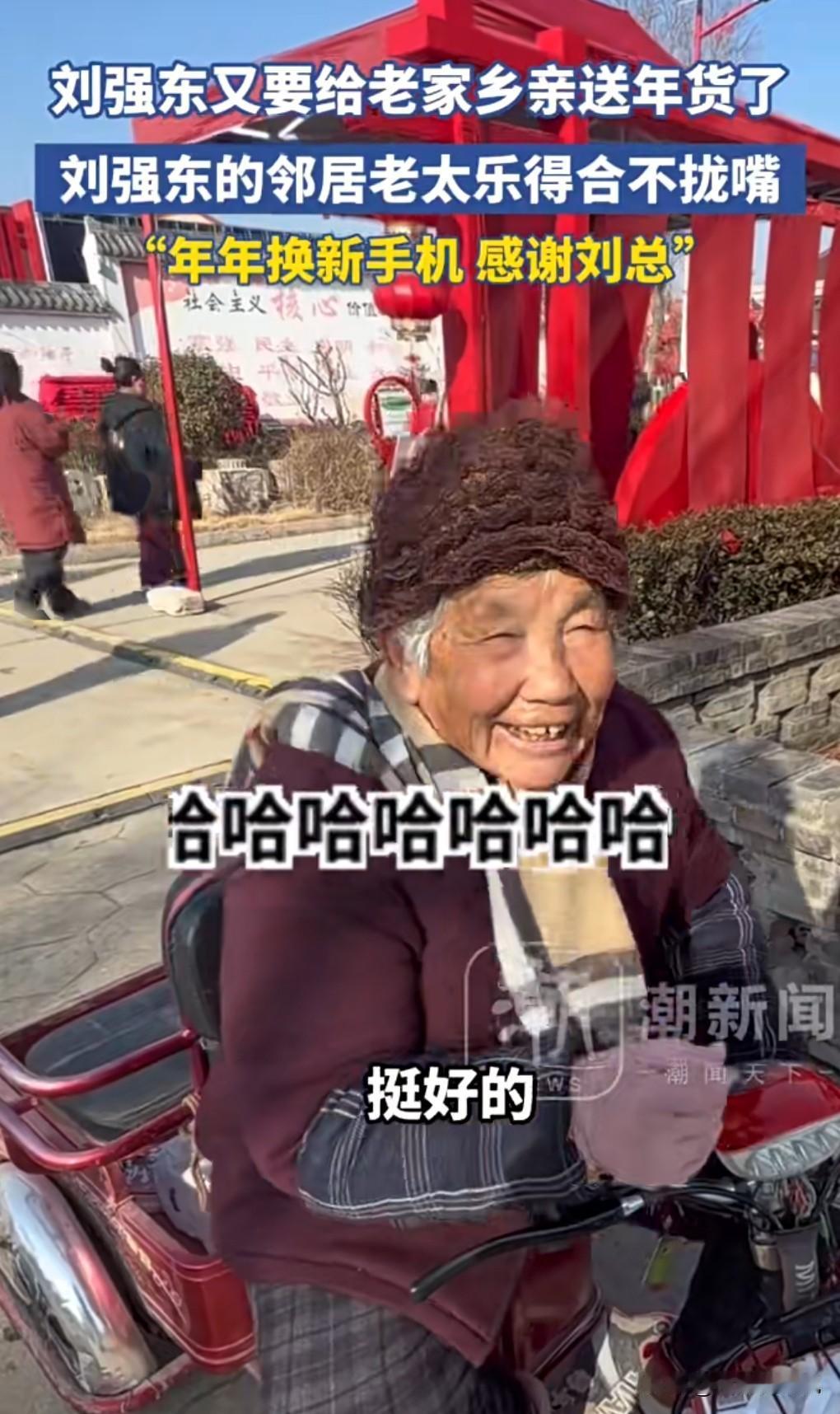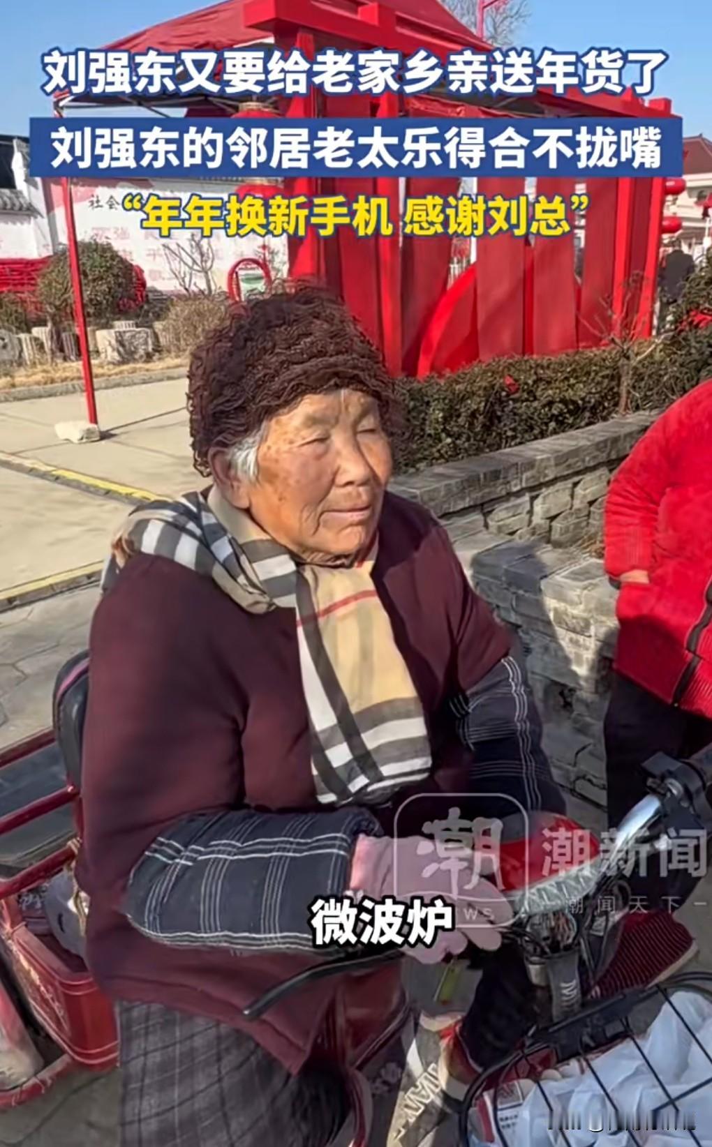 厉害了,刘强东又做好事了。近日,刘强东又要送年货,邻居老太合不拢嘴。 当年刘强东上大学,获得过相亲们的资助。 如今刘强东成为顶级富豪,所以经常回馈这些乡亲们。 这真是滴水之恩当涌泉相报,确实值得学习啊。 刘强东又要送年货,邻居老太笑的合不拢嘴。 老太太说:年年换新手机,感谢刘总。 乡亲们有这么一个好老乡,那也是很大的福气啊。