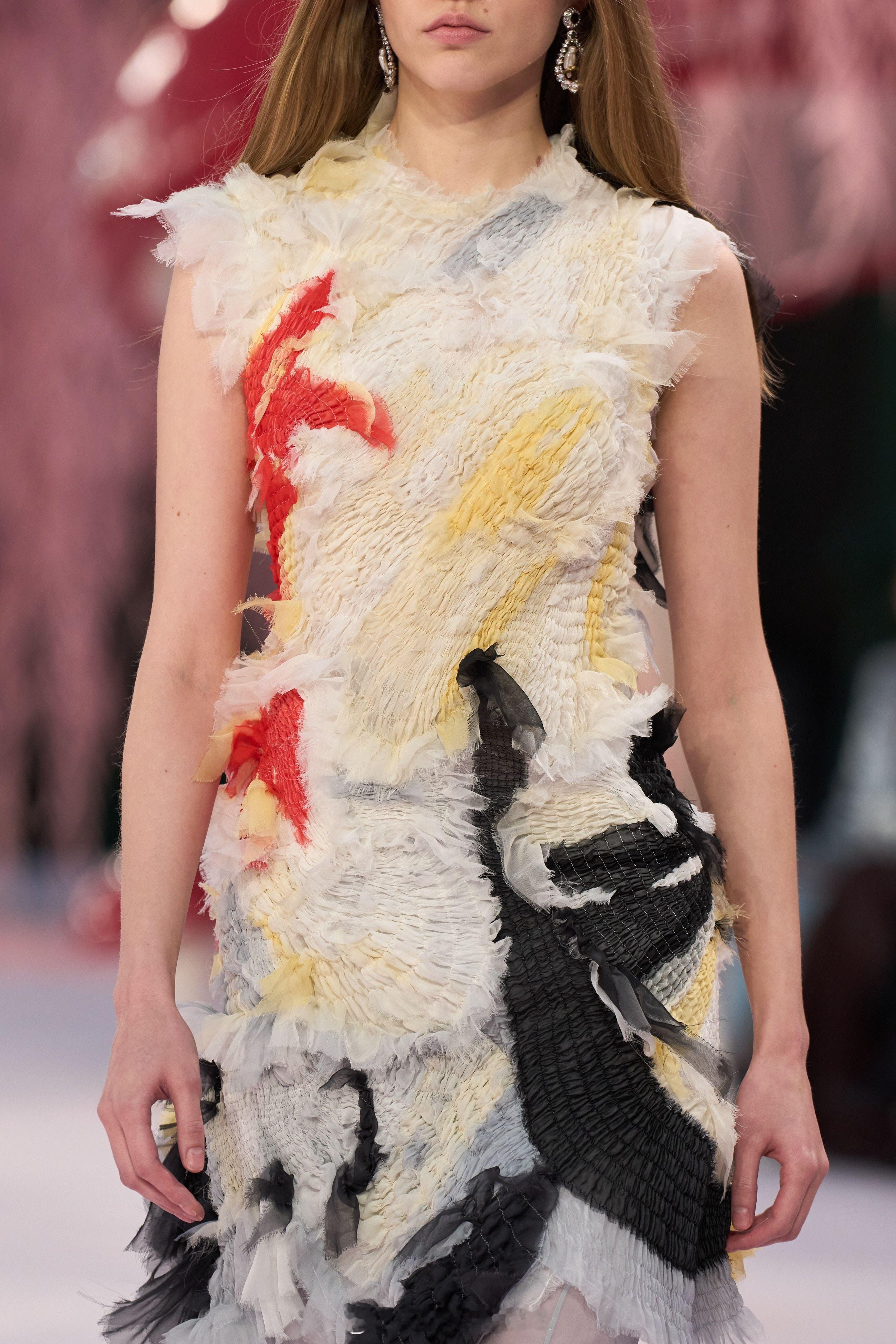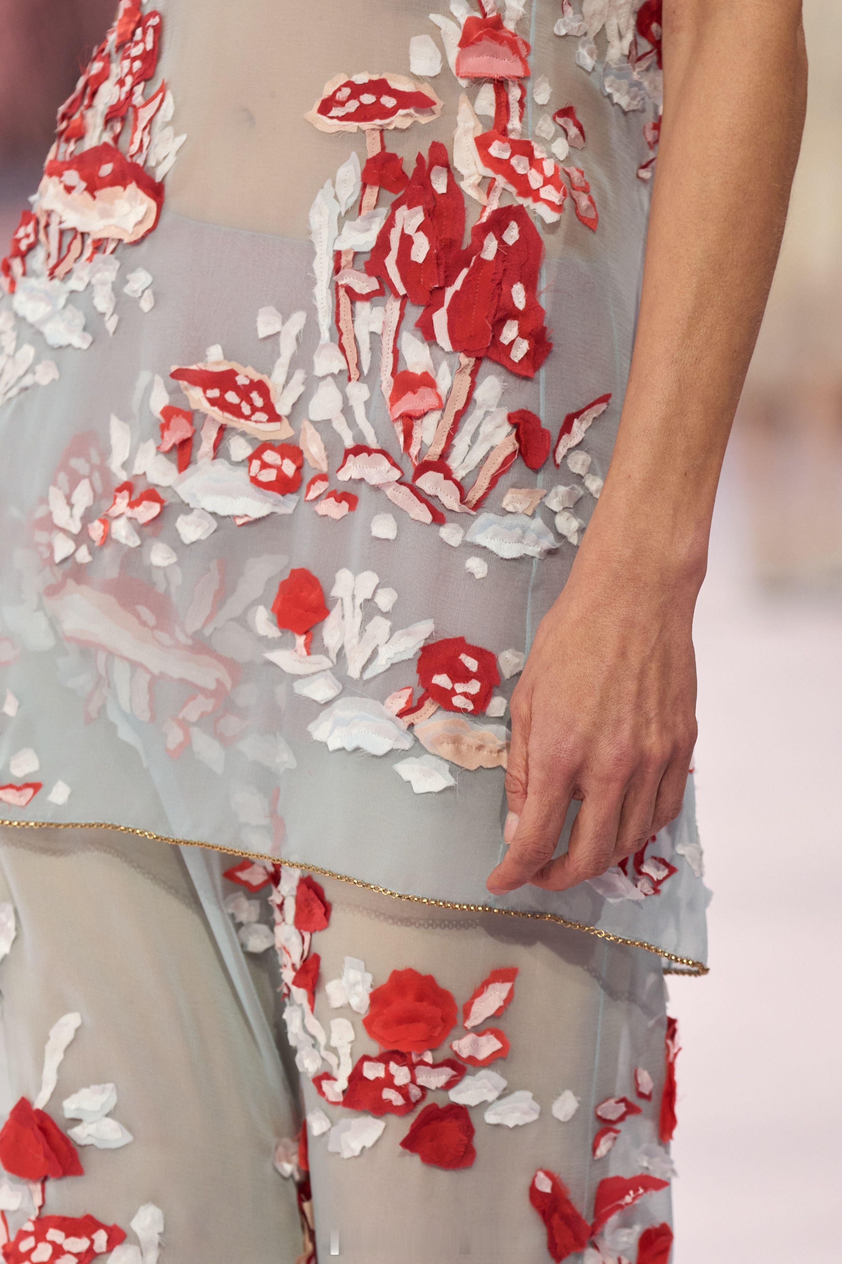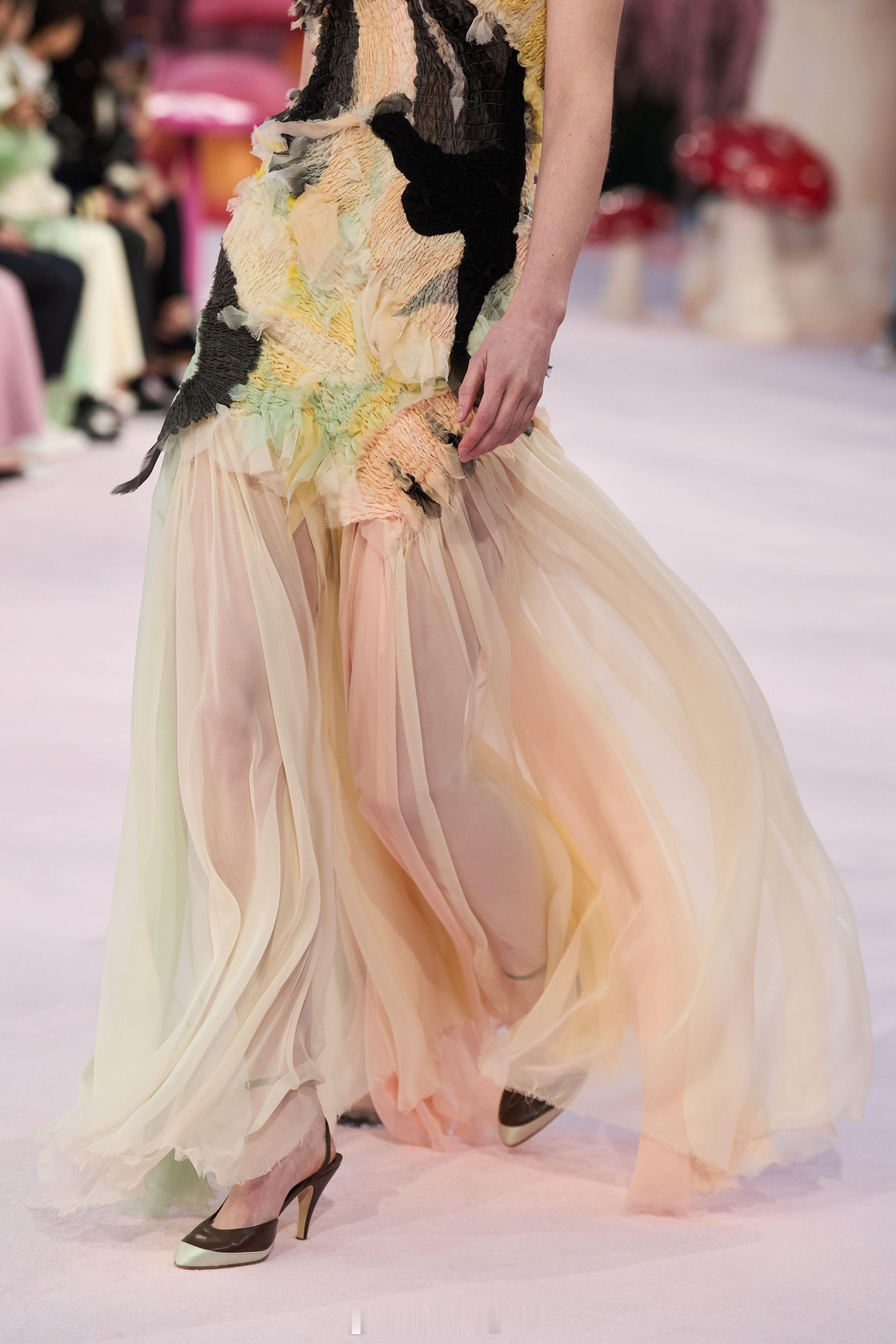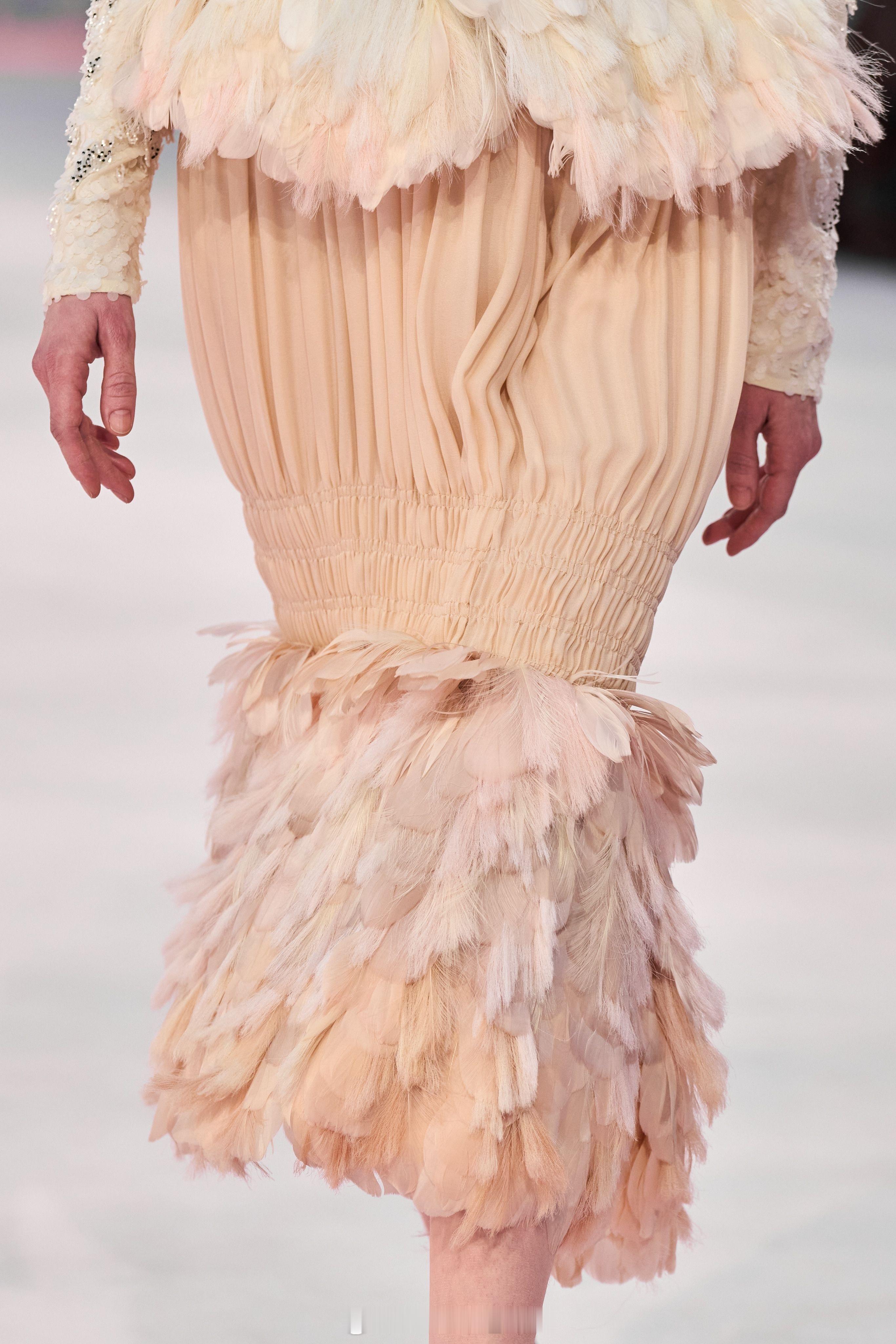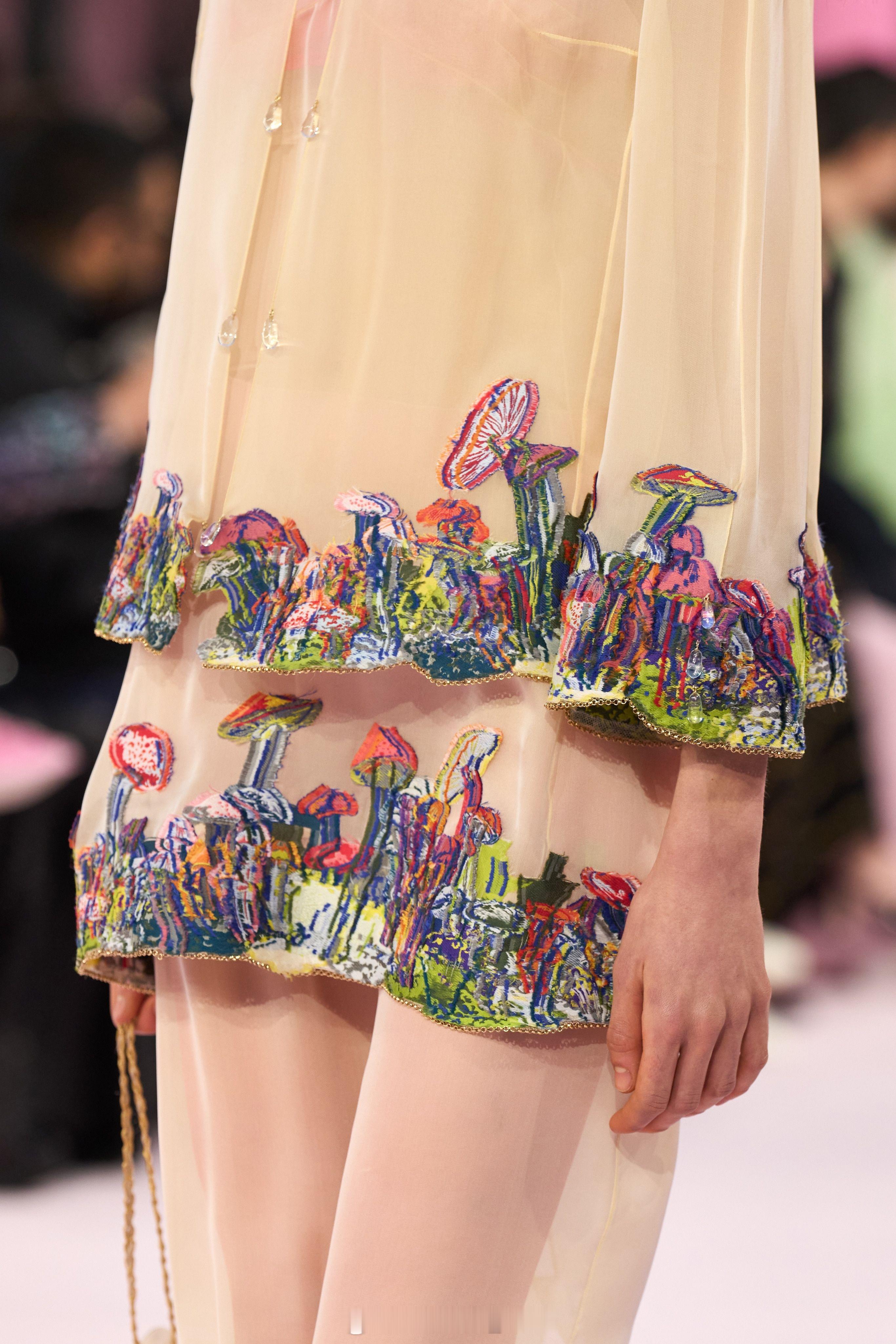 MOK_Runway CHANEL S/S 2026 CoutureMatthieu Blazy打造的首个香奈儿高定系列,宛如一封写给品牌的朦胧情诗 💌 薄纱刺绣情书、蘑菇图案、珠宝点缀……这些肉眼可见的元素化作叙事载体,藏进包袋与礼服之上。以丝纱、刺绣与褶皱为基底,将香奈儿的工坊技艺写入高定序章。本季的灵魂在于「羽化」。女性身影从精妙剪裁中抽离,蜕变为姿态各异的飞鸟——有的以羽毛状亮片覆身,流光溢彩;有的借斜裁真丝勾勒出振翅般的飘逸线条;还有的通过羽毛与薄纱的层叠,塑造出丰满而轻盈的羽翼轮廓。正如Blazy所说:「唯有穿在身上,它们才真正拥有了故事。」这一季,故事属于自由而优美的香奈儿女郎。巴黎高定时装周大秀直击