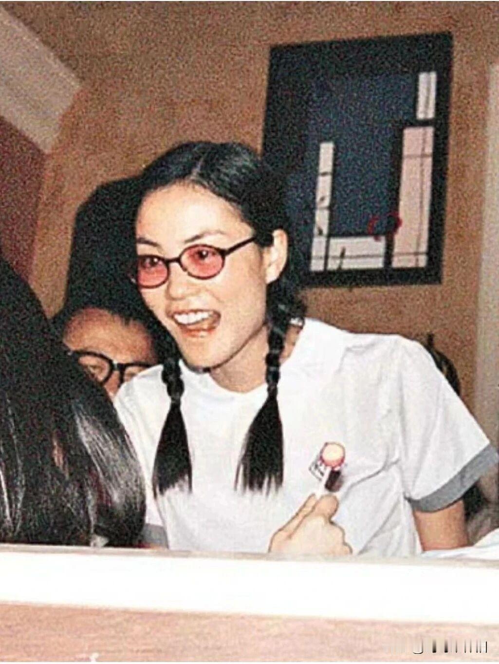 🎆王菲旧照👉原来天后扮起学生妹,比唱《红豆》还甜✨ 谁能想到,唱着“有时候,有时候,我会相信一切有尽头”的王菲,扎起双马尾、穿上学生裙的样子,会这么接地气又可爱。 这组老照片里,她戴着圆框眼镜,两条麻花辫垂在肩头,一身简单的白T恤配百褶裙,像极了放学路上蹦蹦跳跳的少女。面对镜头时,她笑得眼睛弯成月牙,露出整齐的白牙,完全没有舞台上的清冷疏离感。 印象里的王菲,总是自带“生人勿近”的气场,是华语乐坛里独一无二的“冷美人”。可这些照片却让人看见她俏皮又鲜活的一面,原来天后也有这么邻家、这么甜的时刻。王菲