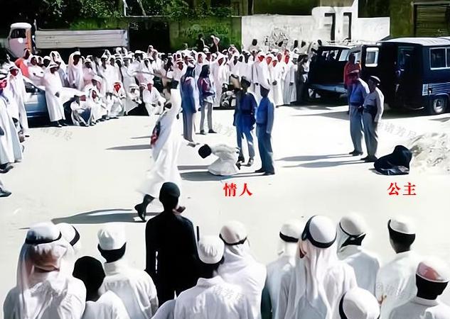 这是1977年沙特王室处死公主米莎尔和她的情人的老照片,照片中一袭黑袍已经倒地死