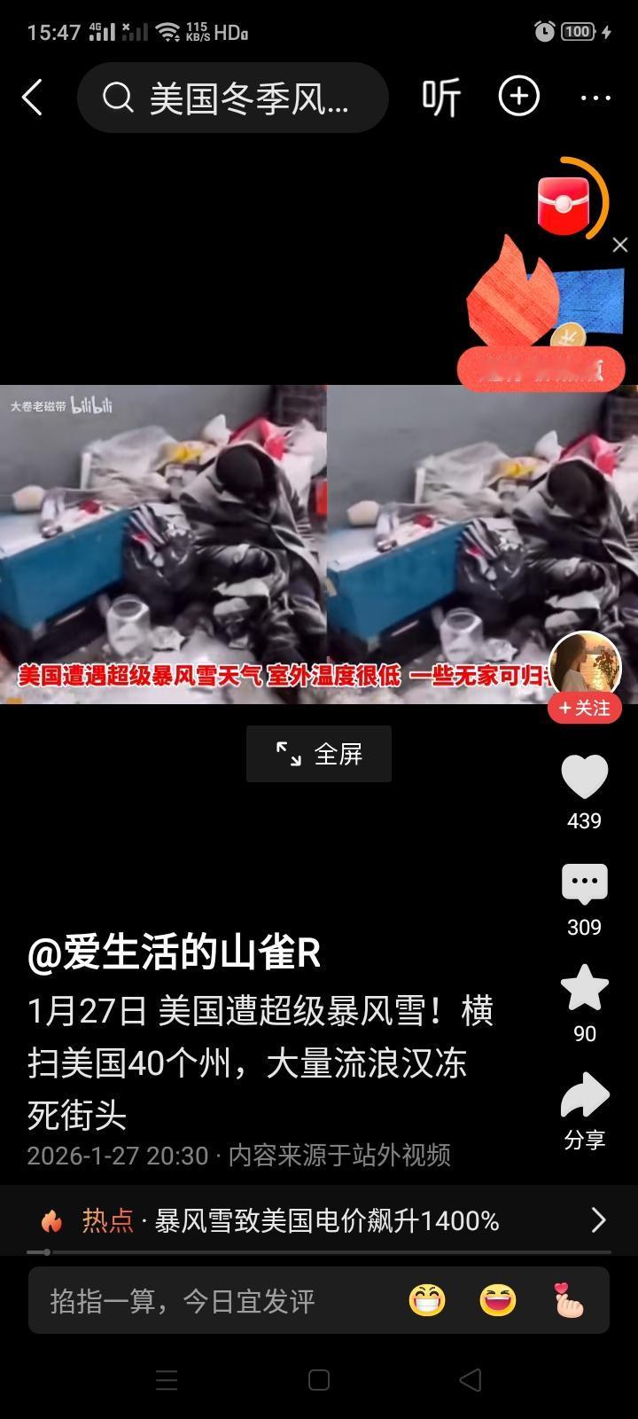 零下40度,“斩杀线”下的美国人民这次恐怕又难挺过去了吧?听说光纽约一夜之间就有几十名流浪者被冻死。这种事情如果发生在中国得有多少官员被问责?但这事发生在美国人们就见怪不怪了,也不会有任何一名官员被问责的,这就是所谓的“民主”国家,被冻死是个人的事?不关国家和政府官员什么事?