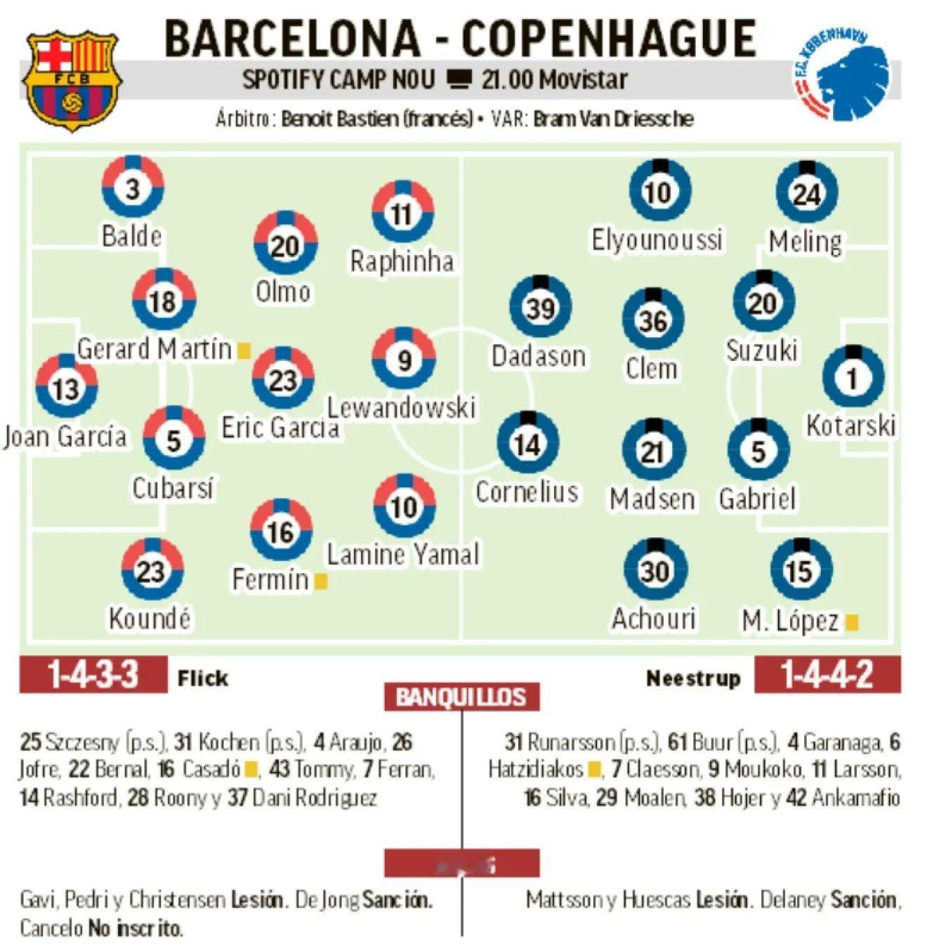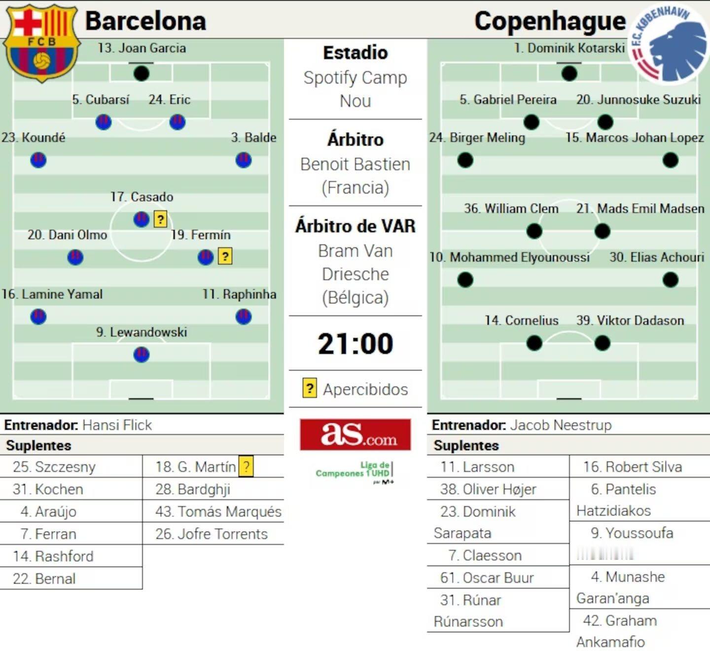 媒体预测巴萨VS哥本哈根比赛首发阵容。巴萨vs哥本哈根欧冠联赛巴萨