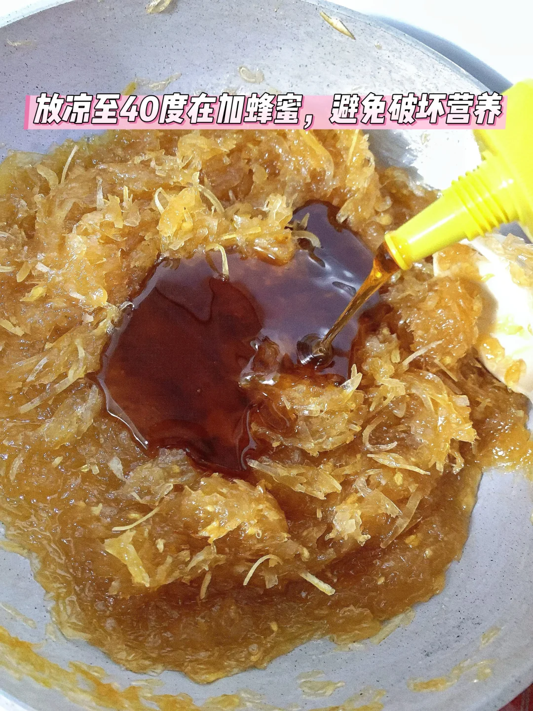 [四R]放凉至40℃以下加蜂蜜拌匀,密封冷藏3天口感更佳
