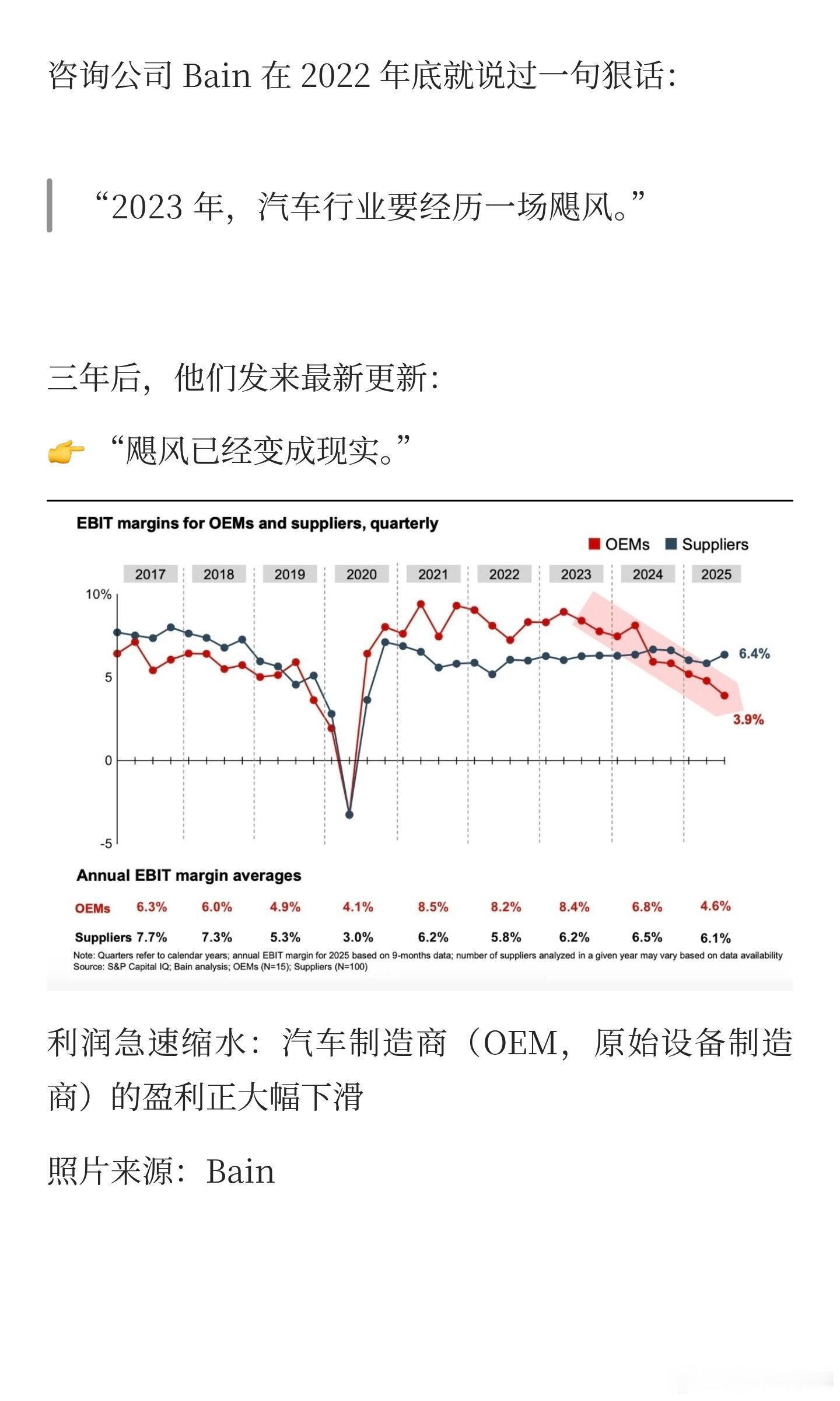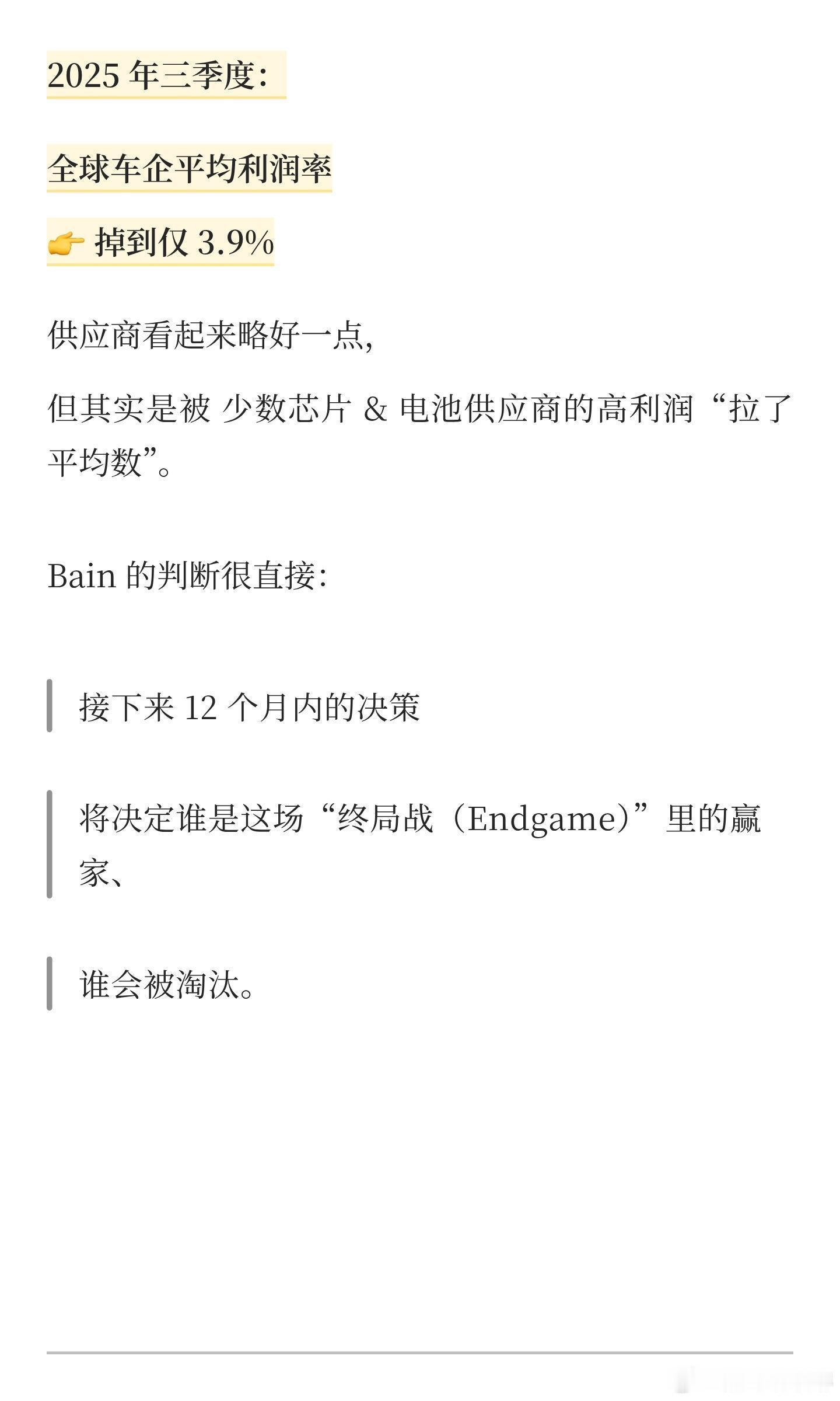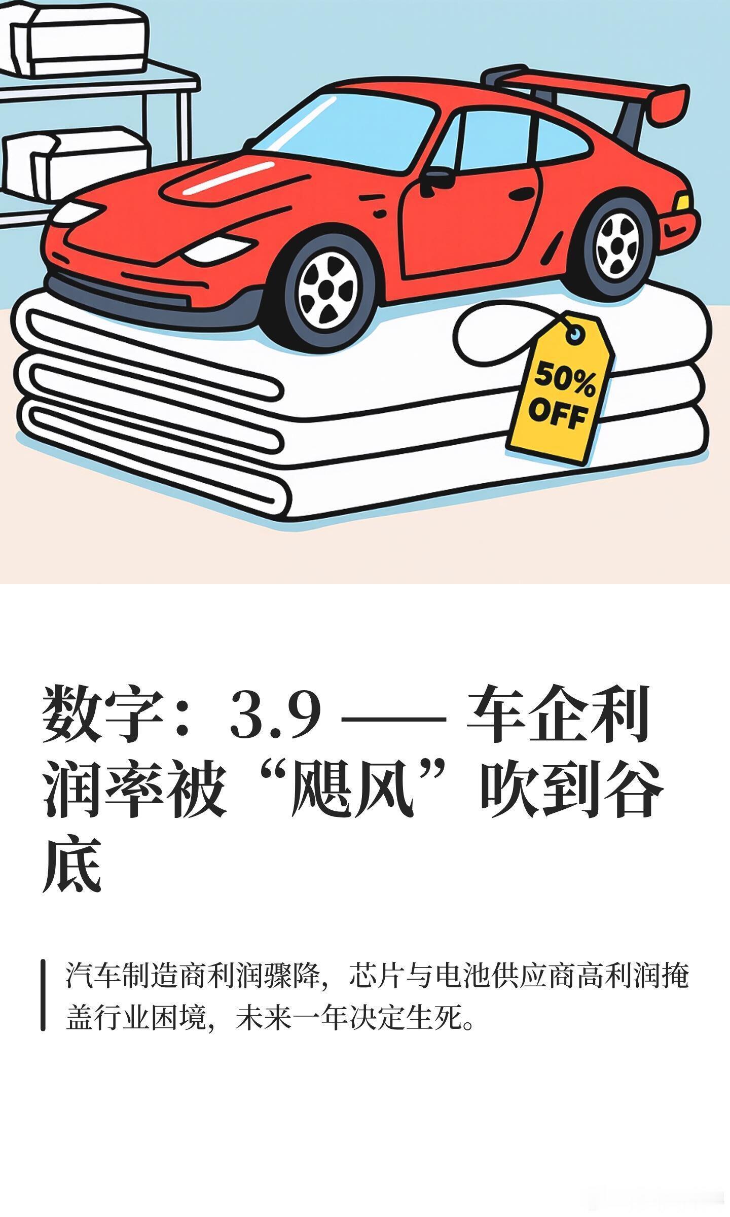 汽车行业利润率降至历史最低 这背后,是一场“量增利薄”的残酷现实。2025年全行业销售利润率仅4.1%,创历史新低,12月更骤降至1.8%,远低于工业平均水平。这场利润“失血”主要由两大压力导致:一、价格战白热化,陷入“增量不增利”陷阱。 为抢占市场,超170款车型卷入降价,新能源车均价降幅达11.7%。经销商超84%出现价格倒挂,六成亏损。市场陷入以价换量的恶性循环。二、成本结构双重挤压。 上游电池级碳酸锂等原材料价格大幅上涨,叠加电动化、智能化转型所需的巨额研发投入(如小米年研发超300亿),短期内难以转化为利润,进一步侵蚀盈利空间。利润触底正引发产业链深度洗牌:头部车企依靠出口平衡利润,尾部企业面临兼并重组;超半数经销商亏损,供应链账款周期拉长,质量风险隐现。行业已走到十字路口。短期依赖价格厮杀的模式难以为继,从“拼价格”转向“拼技术”与“拼体验”,通过全球化布局与全生命周期服务创造价值,或许是穿越寒冬的关键出路。大v聊车