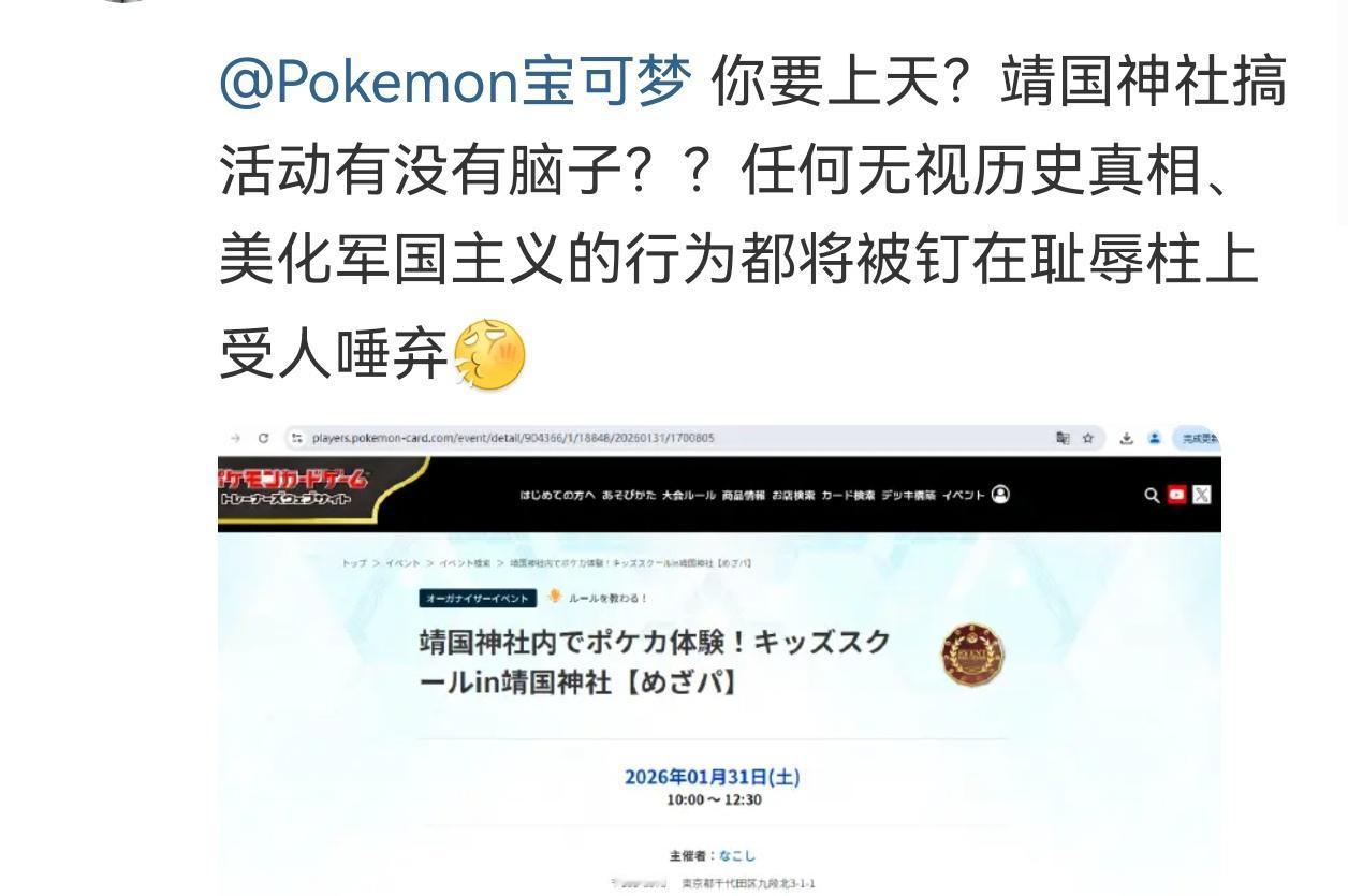 靖国神社7年前就员工参拜靖国神社,宝可梦中国粉丝是掩盖与沉默 ,2026年 宝可梦 靖国神社搞活动,我看中国粉丝怎么说