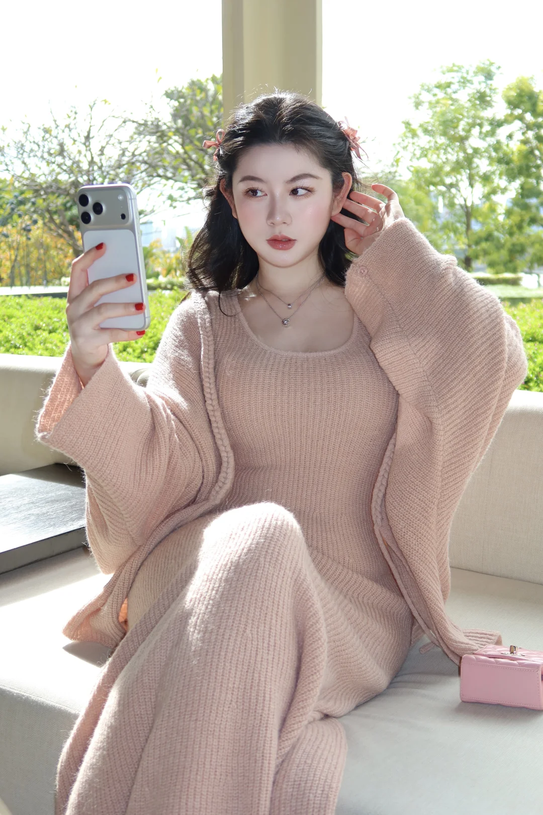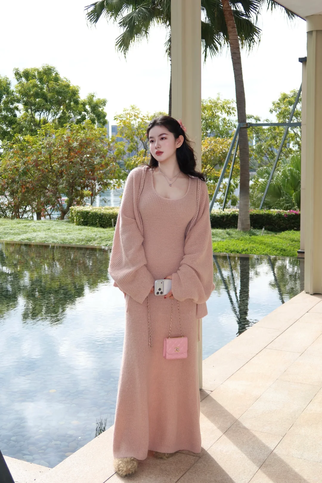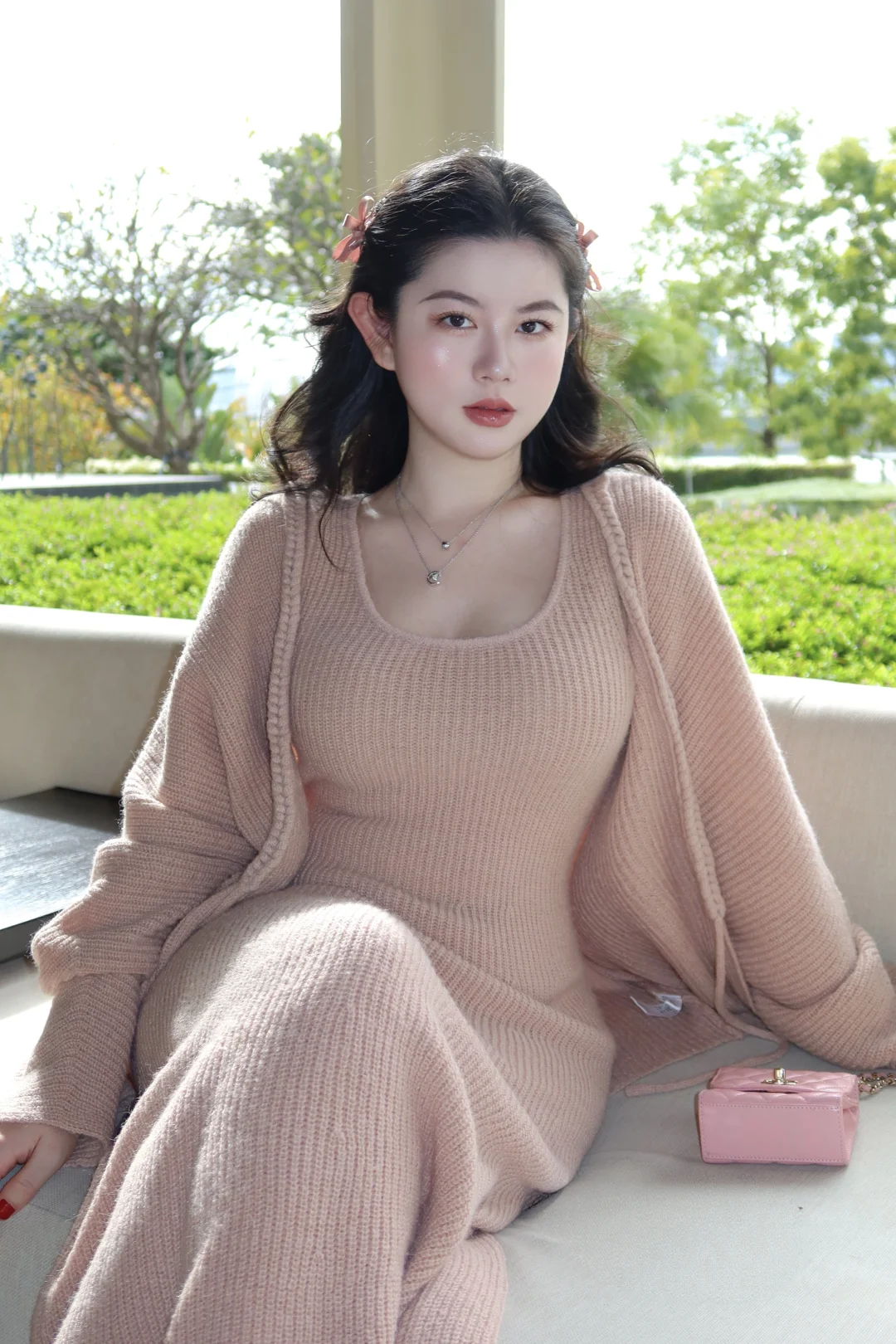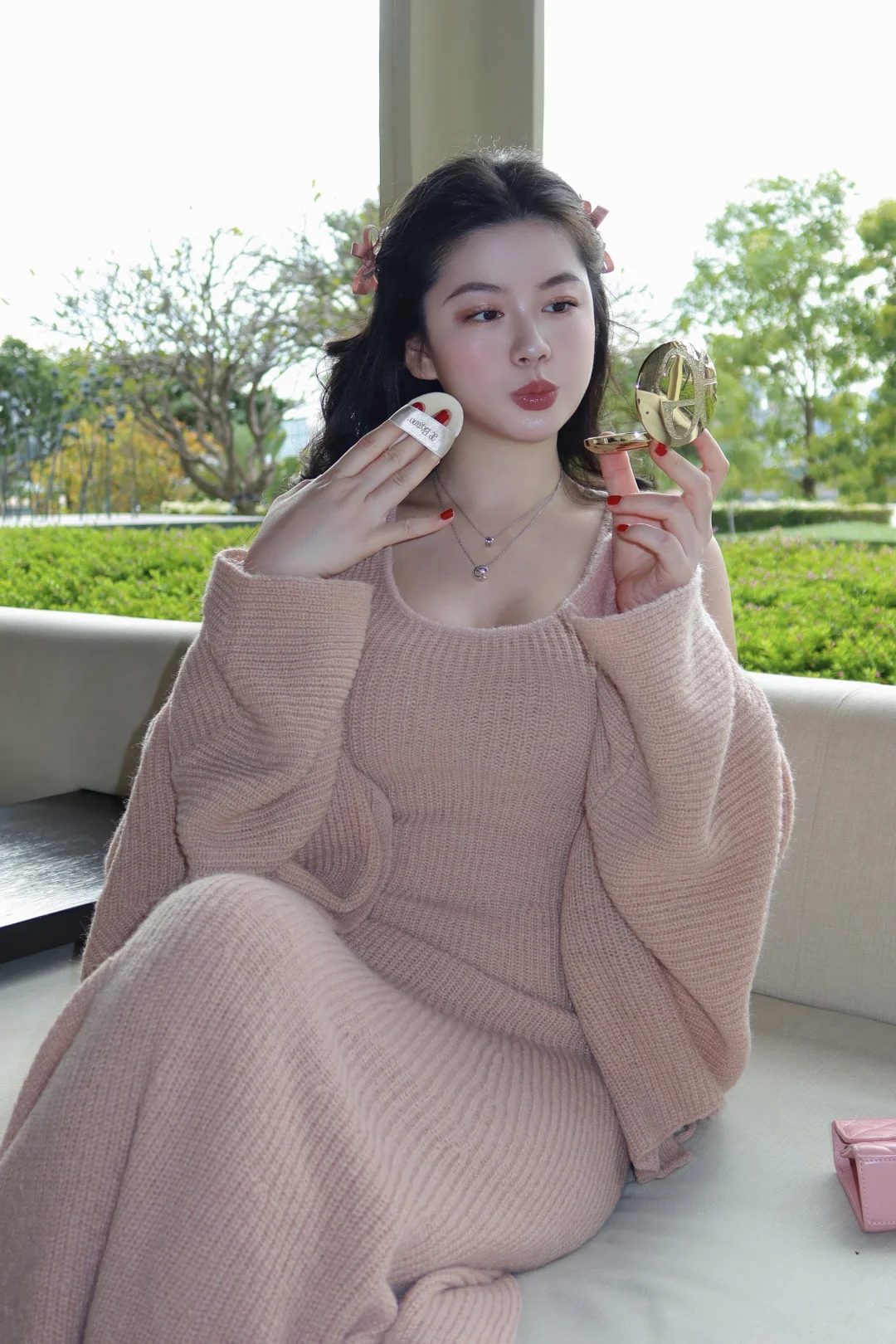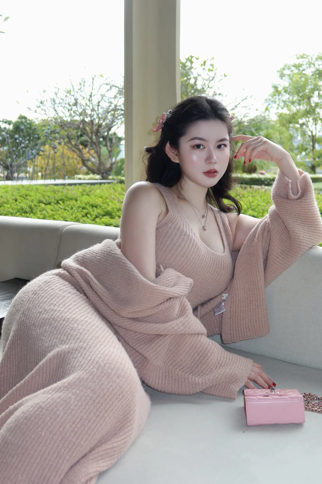 温柔粉嫩少女风,粉色毛衣搭配蕾丝围巾,甜美动人!💖✨