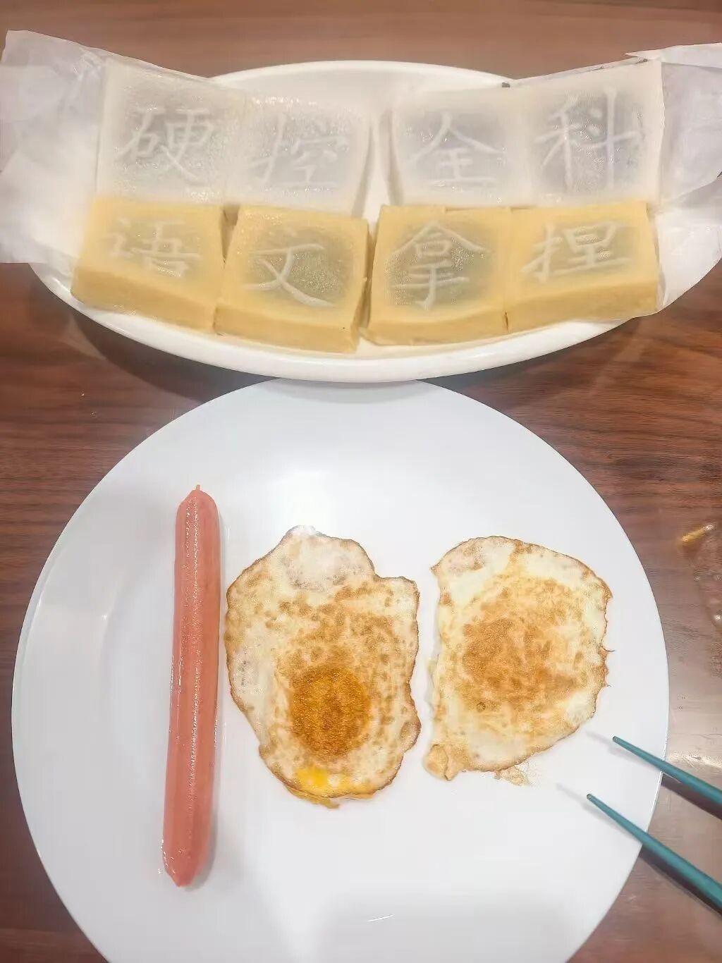 哈,你家考试早餐是不是也这“老配方”?一根油条俩鸡蛋,非得摆成“100”的样子,
