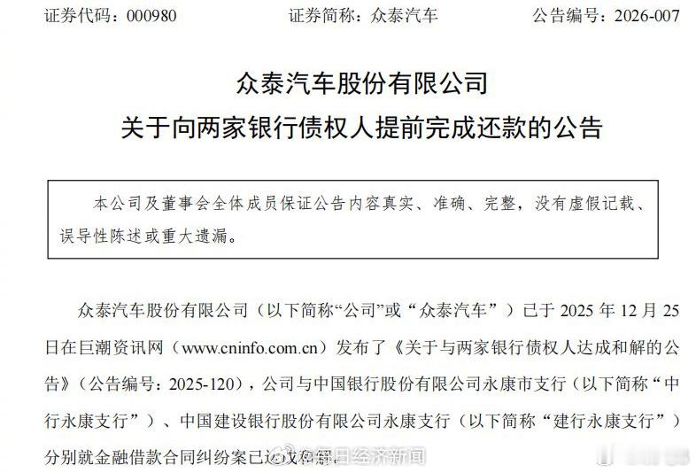 众泰汽车已开启招聘众泰汽车已在为复工复产做准备 众泰汽车近期发布《关于向两家银行债权人提前完成还款的公告》,其中提到它已向中国银行股份有限公司永康支行、中国建设银行股份有限公司永康支行分别偿还剩余债务约2.12亿元和1.73亿元,合计约3.85亿元。同时,一位众泰汽车的内部人士也表示“公司已经开始对外招聘,正在为复工复产做准备”。不过真说起来的话,众泰汽车现在能立刻掏出来什么亮眼且有竞争力的产品吗……这好像有点困难吧?