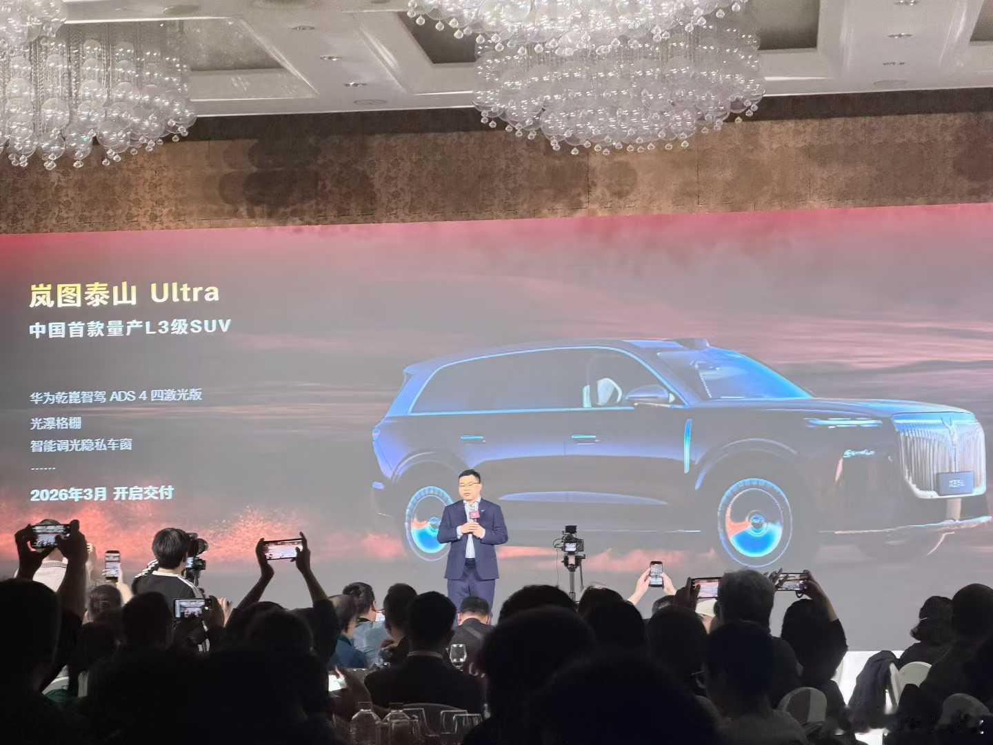 L3级辅助驾驶要来了?今年3月将开启量产交付岚图岚图泰山汽场全开L3级辅助驾驶 今日消息,在媒体答谢宴上,岚图汽车公布了今年重点车型的上市节奏。其中包括岚图泰山Ultra、泰山X8、岚图FE(代号)、岚图珠峰(代号)。值得注意的是,此次公布的四款车型都将搭载L3级智能辅助驾驶硬件,其中两款车型将在今年3月开启交付。编辑视点:2026大概率会是L3爆发的元年,此次岚图所公布的四款车型在硬件上都实现了对L3的支持。我相信,岚图绝不会是最后一家,今年一众车企努力的风向标有了。岚图泰山 Ultra官方称将是中国首款量产L3级SUV,搭载华为乾崑智驾ADS 4四激光版,将于2026年3月开启交付。该车已于2025年11月上市,定位大型SUV,指导价45.99万元,采用插电式混合动力系统。电池方面,搭载65度三元锂电池,WLTC工况下纯电续航里程290km。岚图泰山X8定位大五座SUV,据官方披露,其长宽高分别为5200x2025x1814,号称中国最大五座空间,将于2026年3月开启交付。据此前数据披露,该车定位大型SUV,轴距达到3090mm,采用插电式混合动力。电池方面,根据配置的不同分别提供44.5度磷酸铁锂电池和65度三元锂电池,对应WLTC工况下纯电续航里程为190km和300km。岚图FE定位纯电FUV车型,将于2026年中旬上市。值得一提的是,FUV的概念由法拉利提出,英文的全称为“Ferrari Utility Vehicle”,翻译过来是“法拉利多功能车”。该概念发布后被诸多车企饮用,可以粗暴的理解为“往GT跨界的SUV”。岚图珠峰官方称该车为全球首个搭载L3自动驾驶MPV,预计2026年下半年上市。