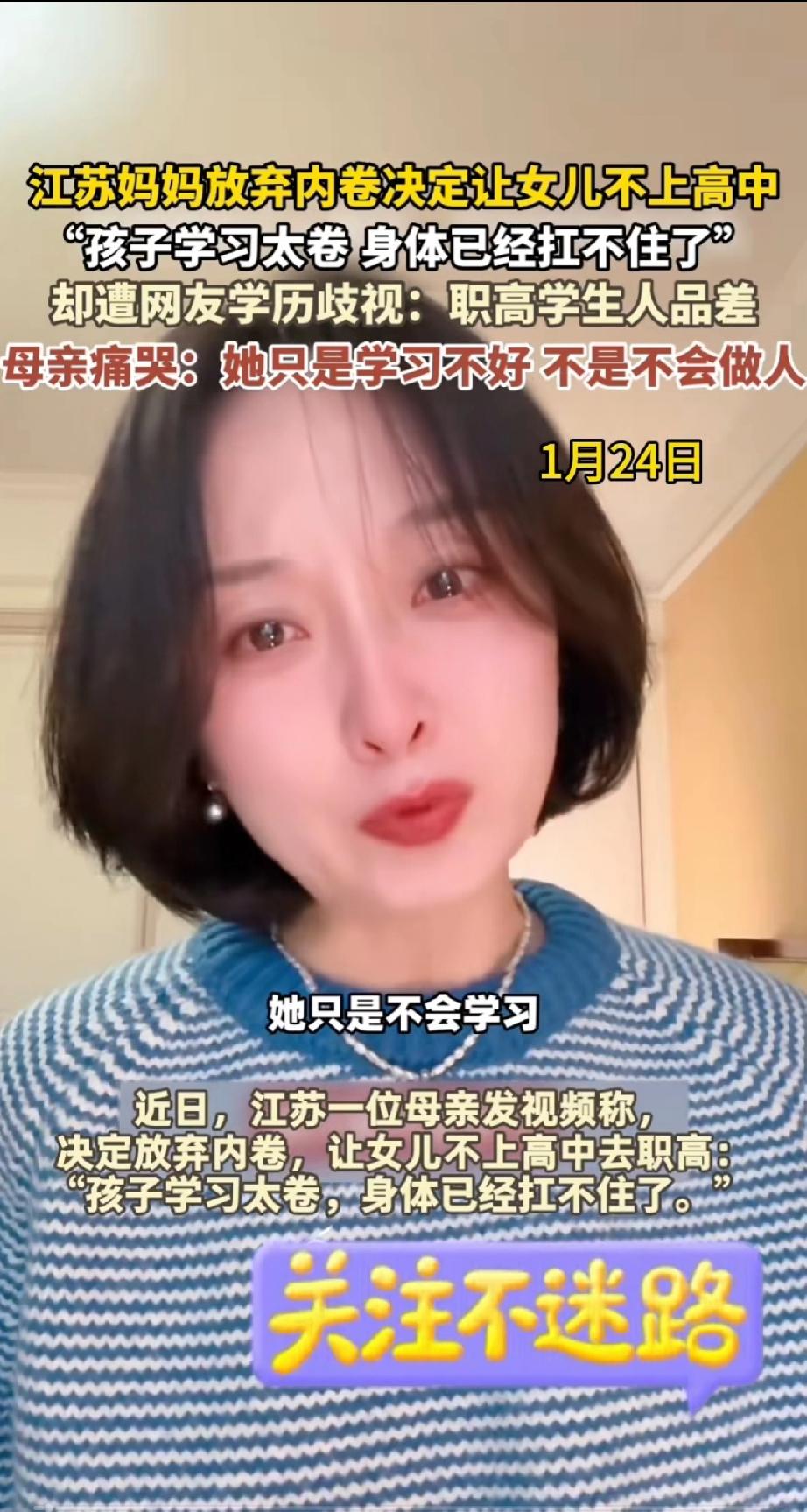 妈妈心疼孩子内卷,放弃高中上职业中专。 被网友歧视说“职高人品差”。 妈妈回应,