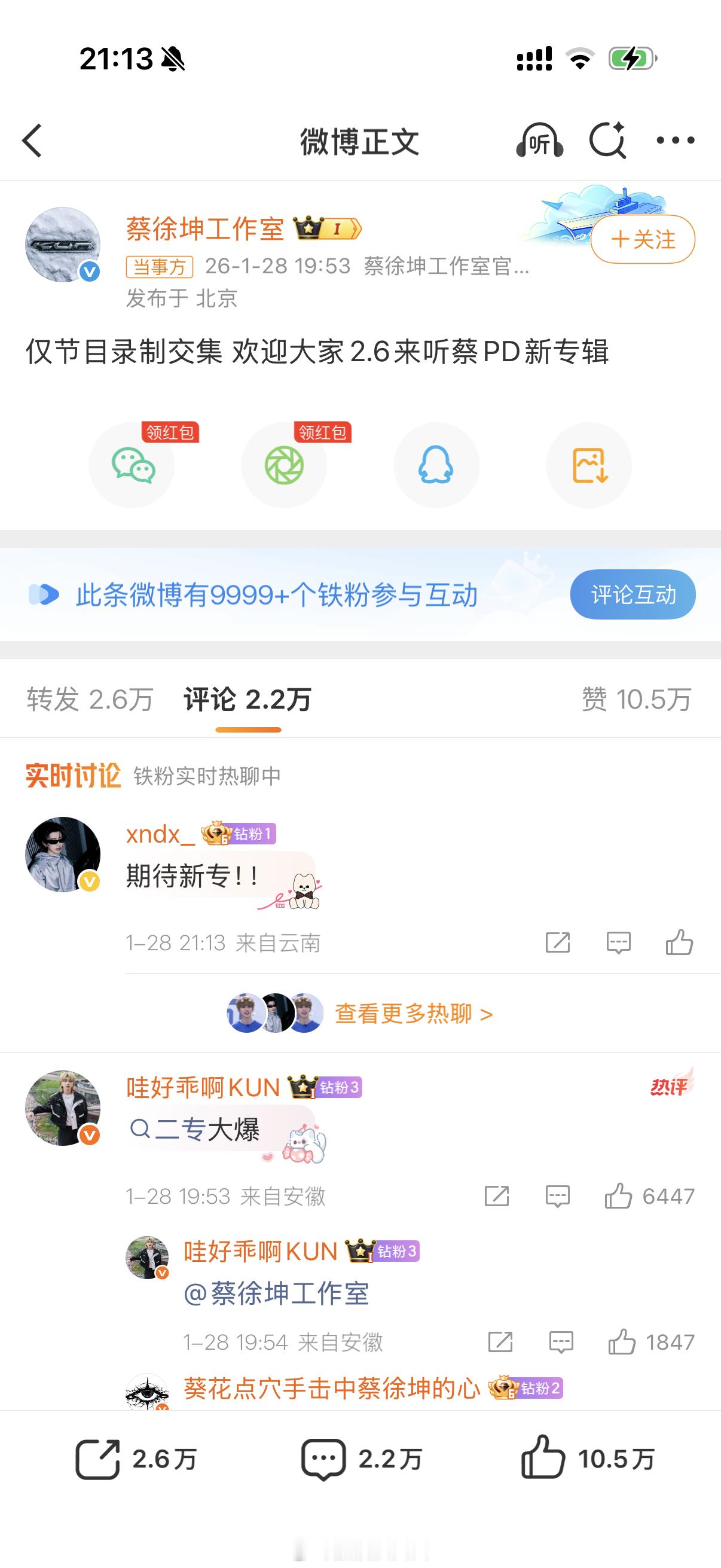 周日给大家开五百个铁粉红包,咱们这次一起跨入next level!提前预告,给铁