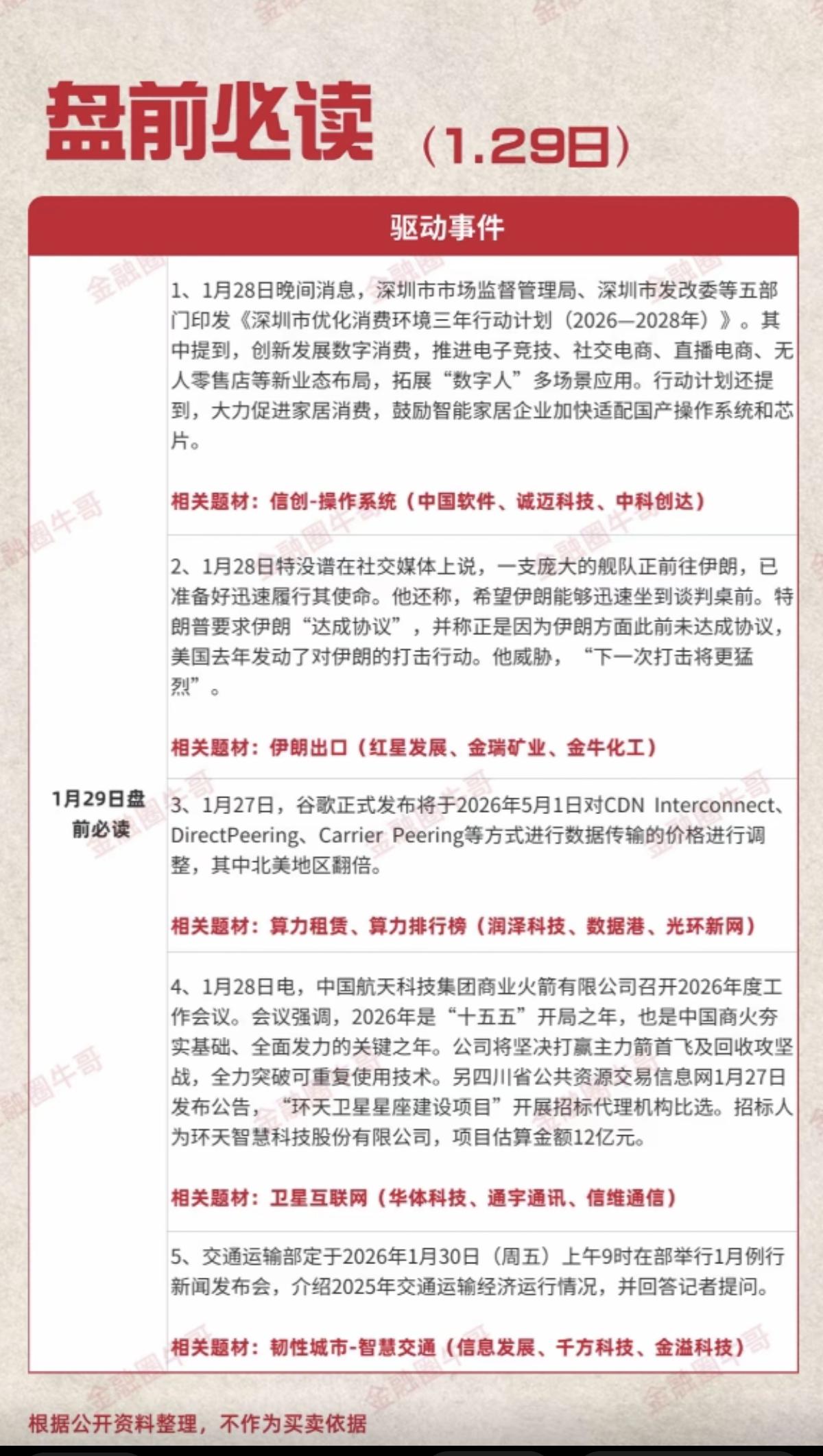 1.29周四 盘前必读! 1.信创-操作系统 2.伊朗出口 3.算力租恁,算力排行榜 4.卫星互联网 5.韧性城市-智慧交通